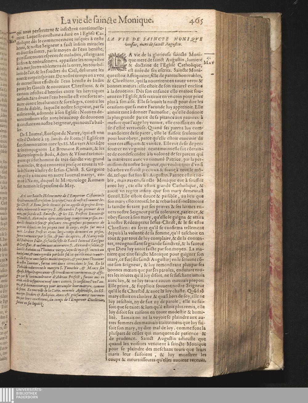 IV La vie de saincte Monique veufue, mere de sainct Augustin.
