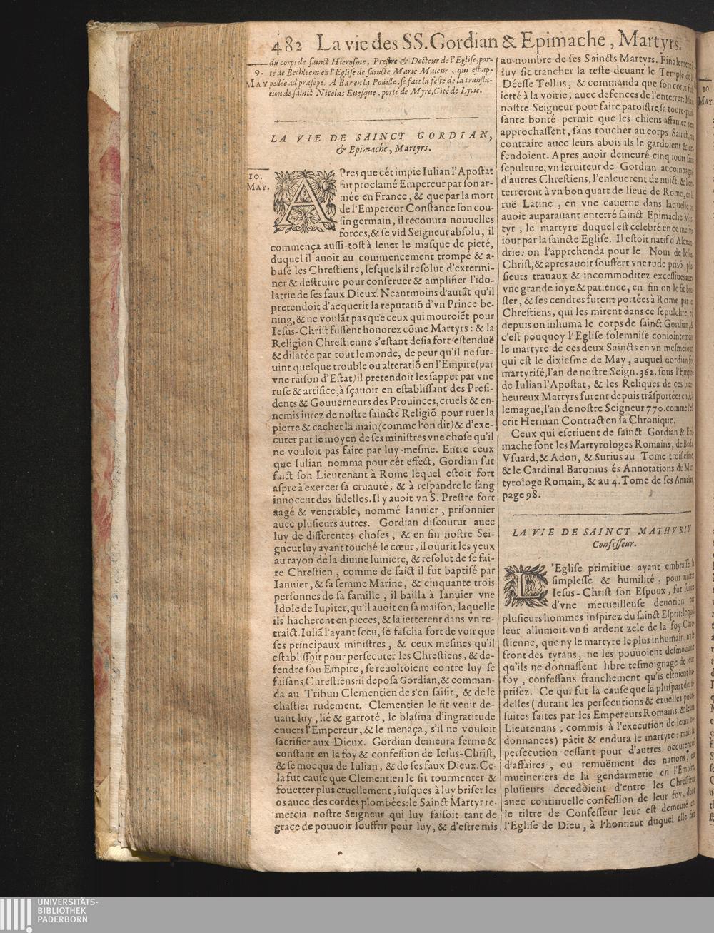 [1] (1631) Les fleurs des vies des saincts et des festes de toute l'année, suivant l'usage du calendrier Romain Reforme