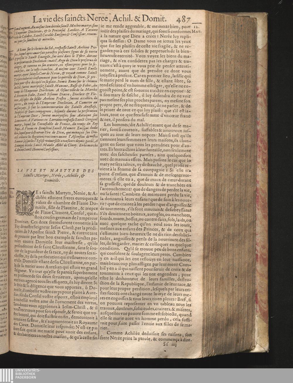 XII La vie de saincts Martyrs, Nerée, Achillée, & Domitille.