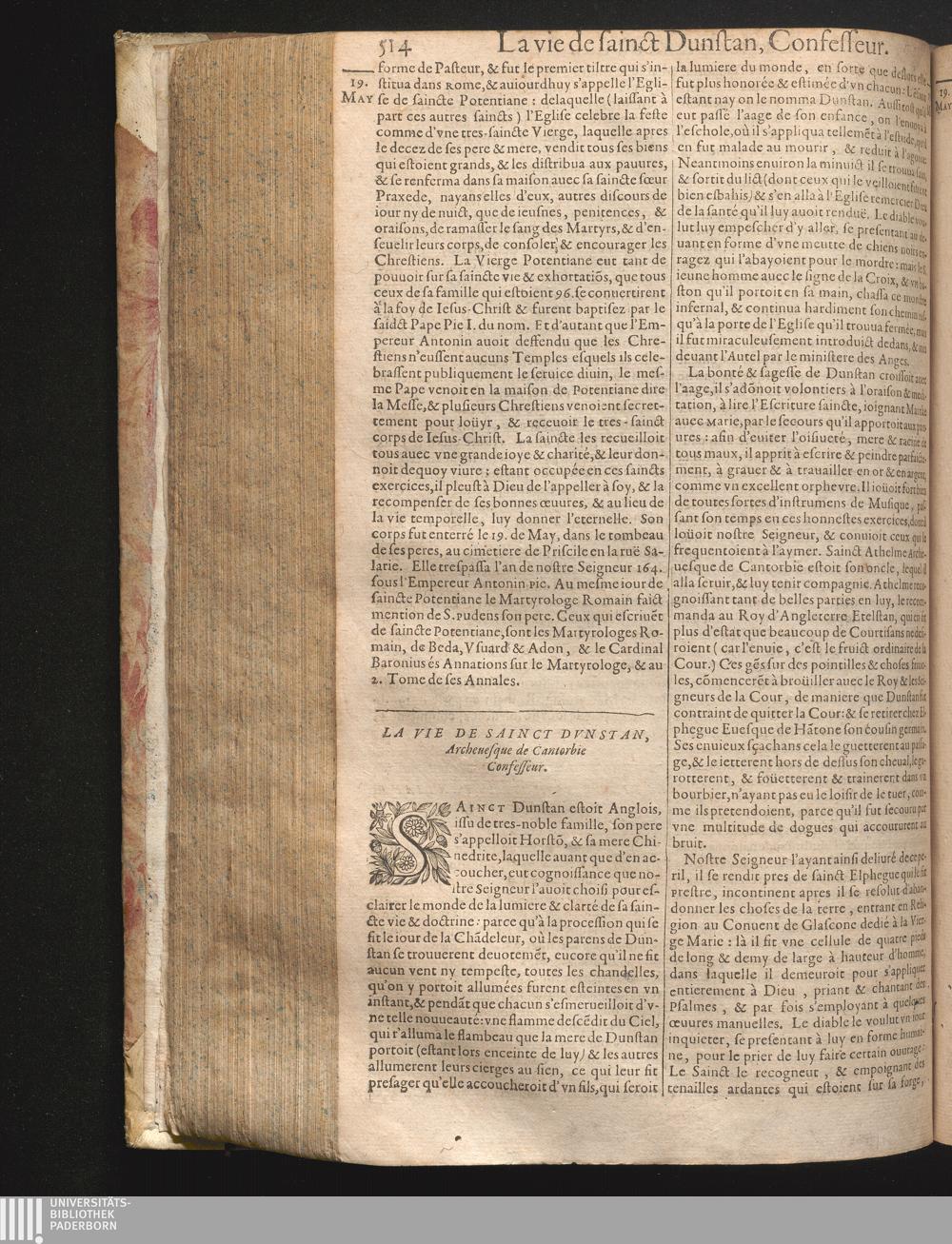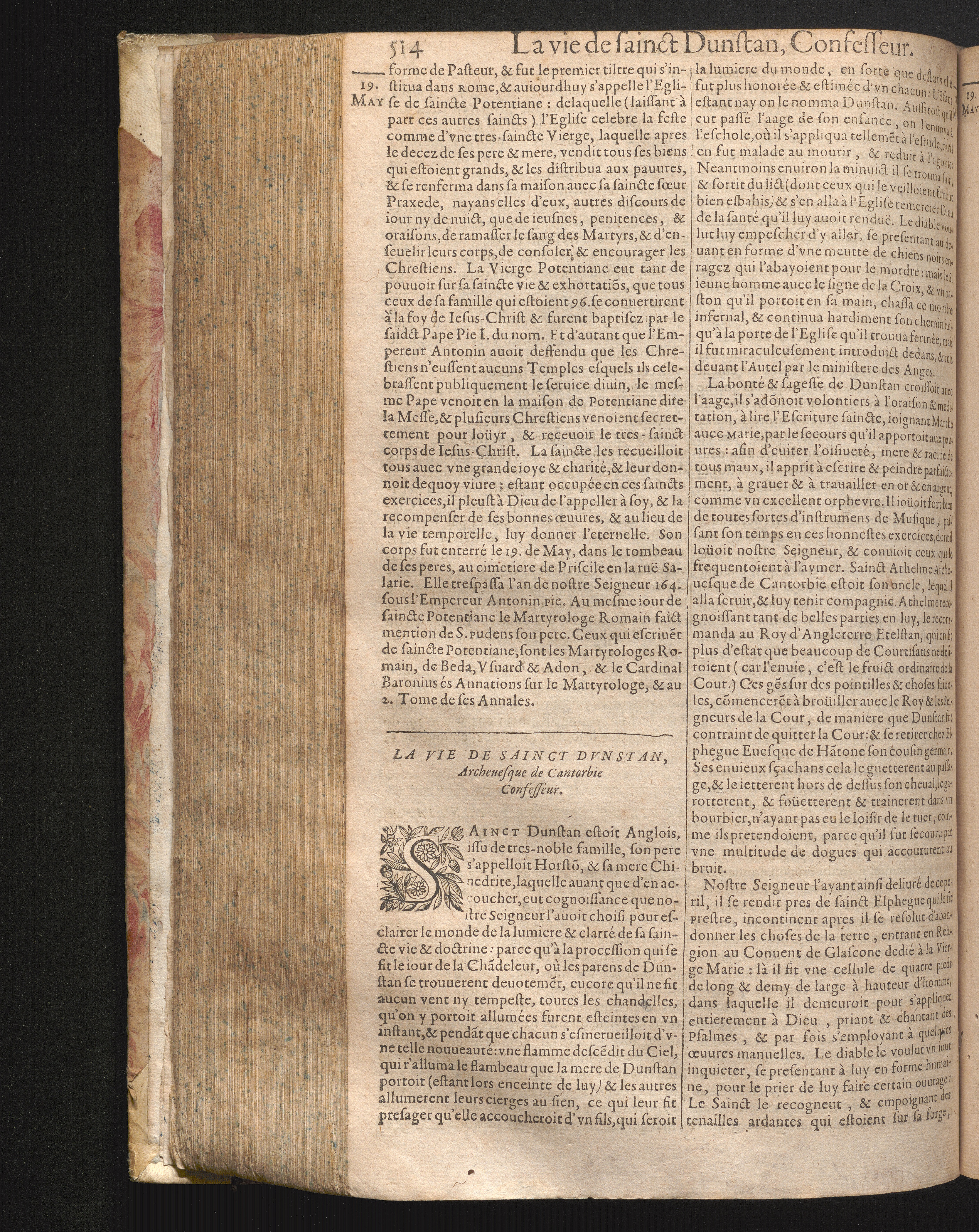 XIX La vie de sainct Dunstan Archeuesque de Cantorbie, Confesseur.