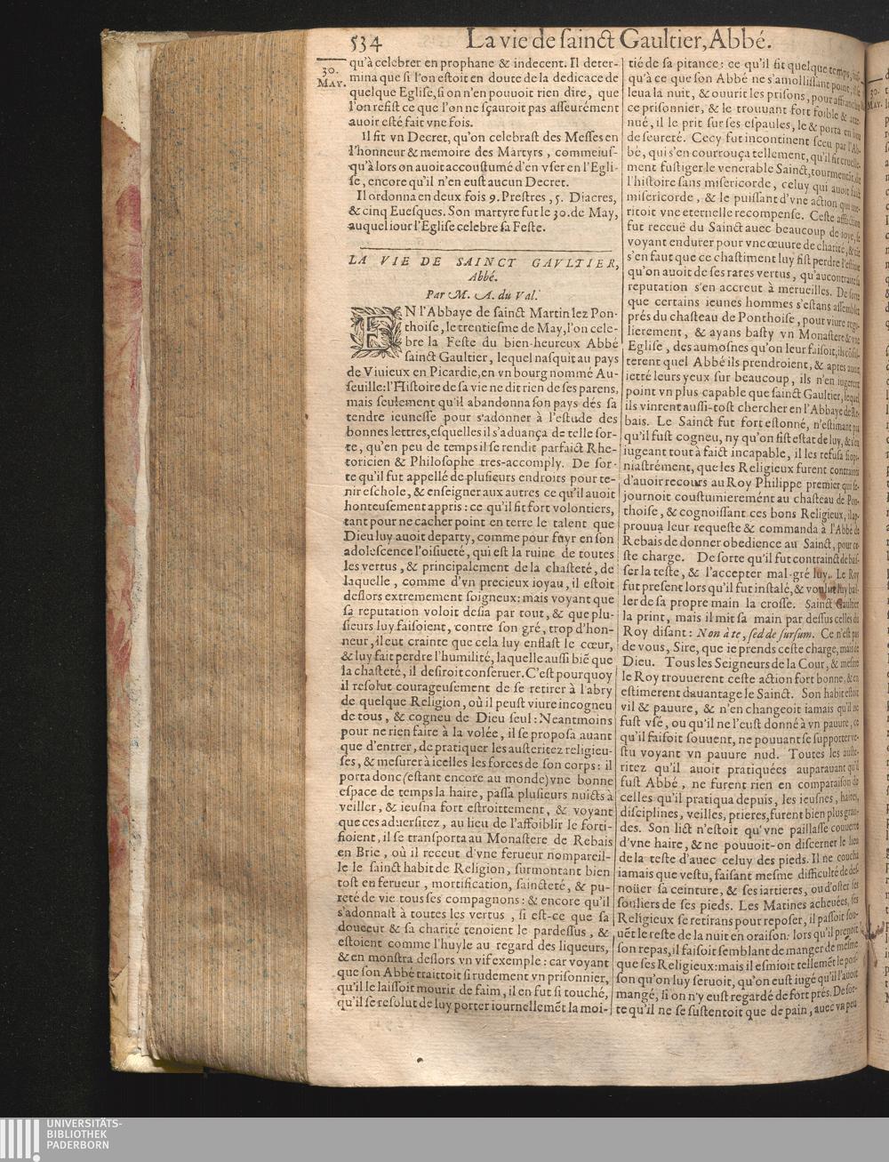 XXX La vie de sainct Gautier, Abbé.