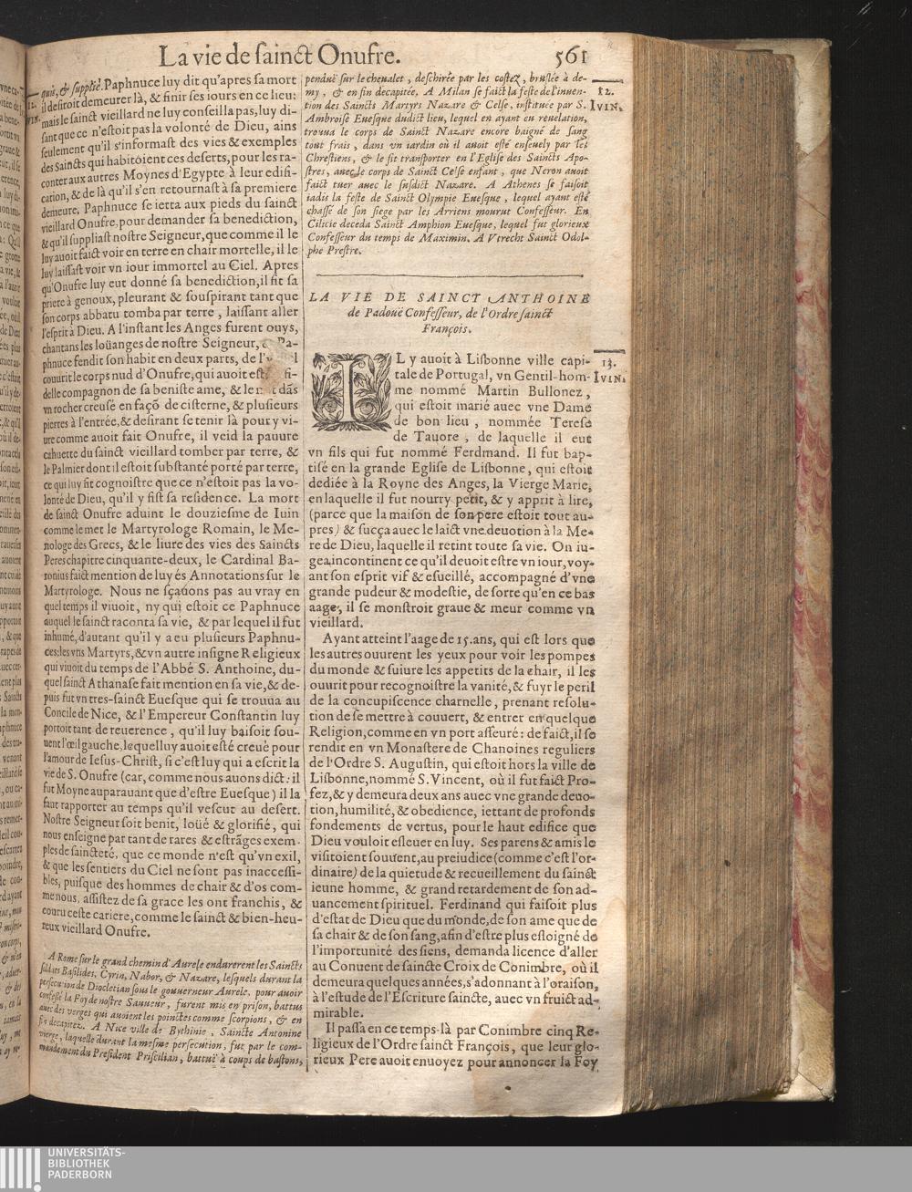 XIII La vie de sainct Anthoine de Padoüe, Confesseur.