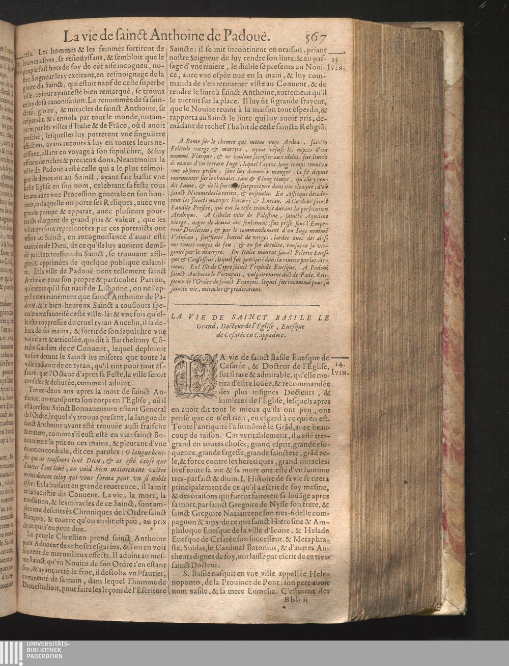 XIV La vie de sainct Basille le Grand, Docteur de l'Eglise.