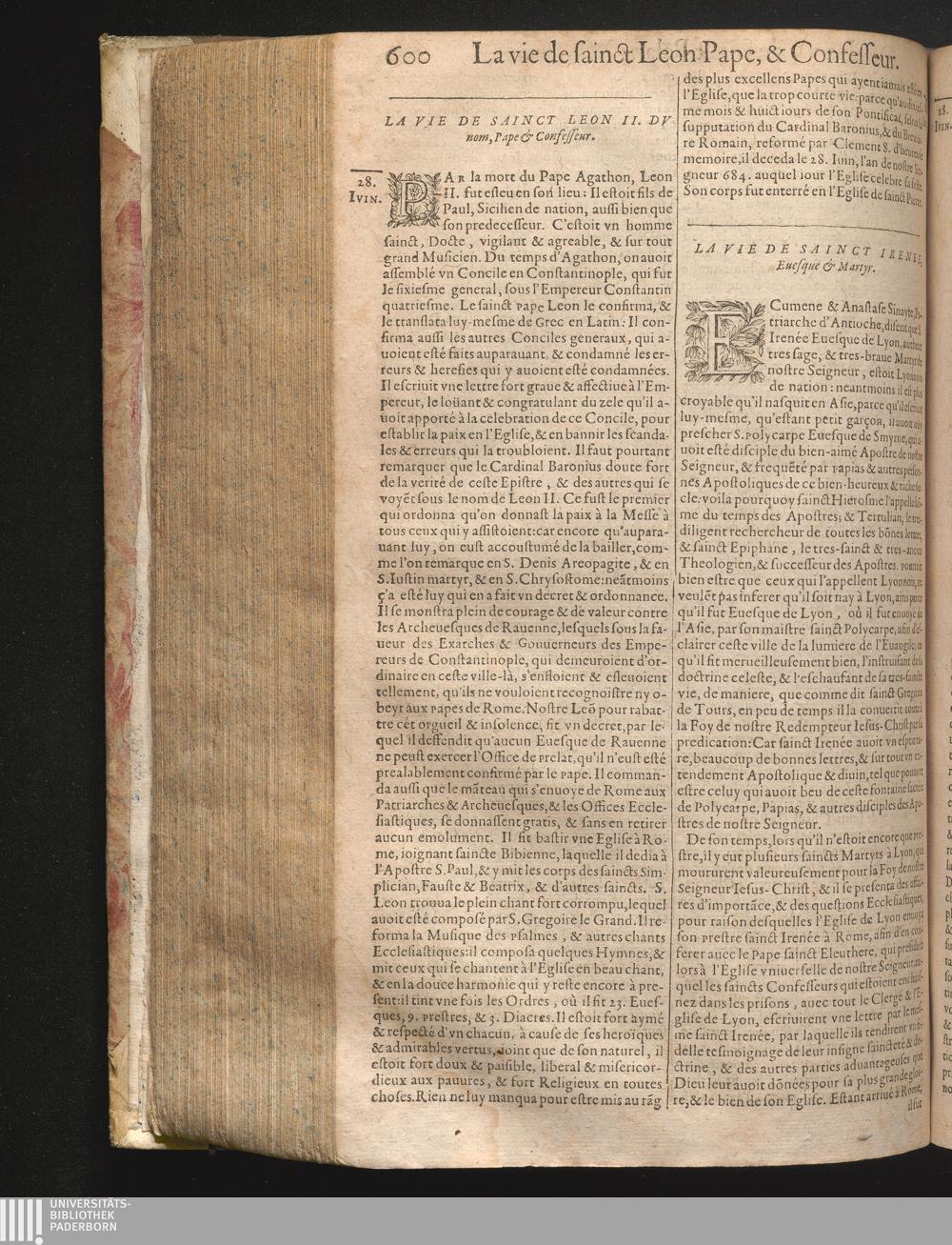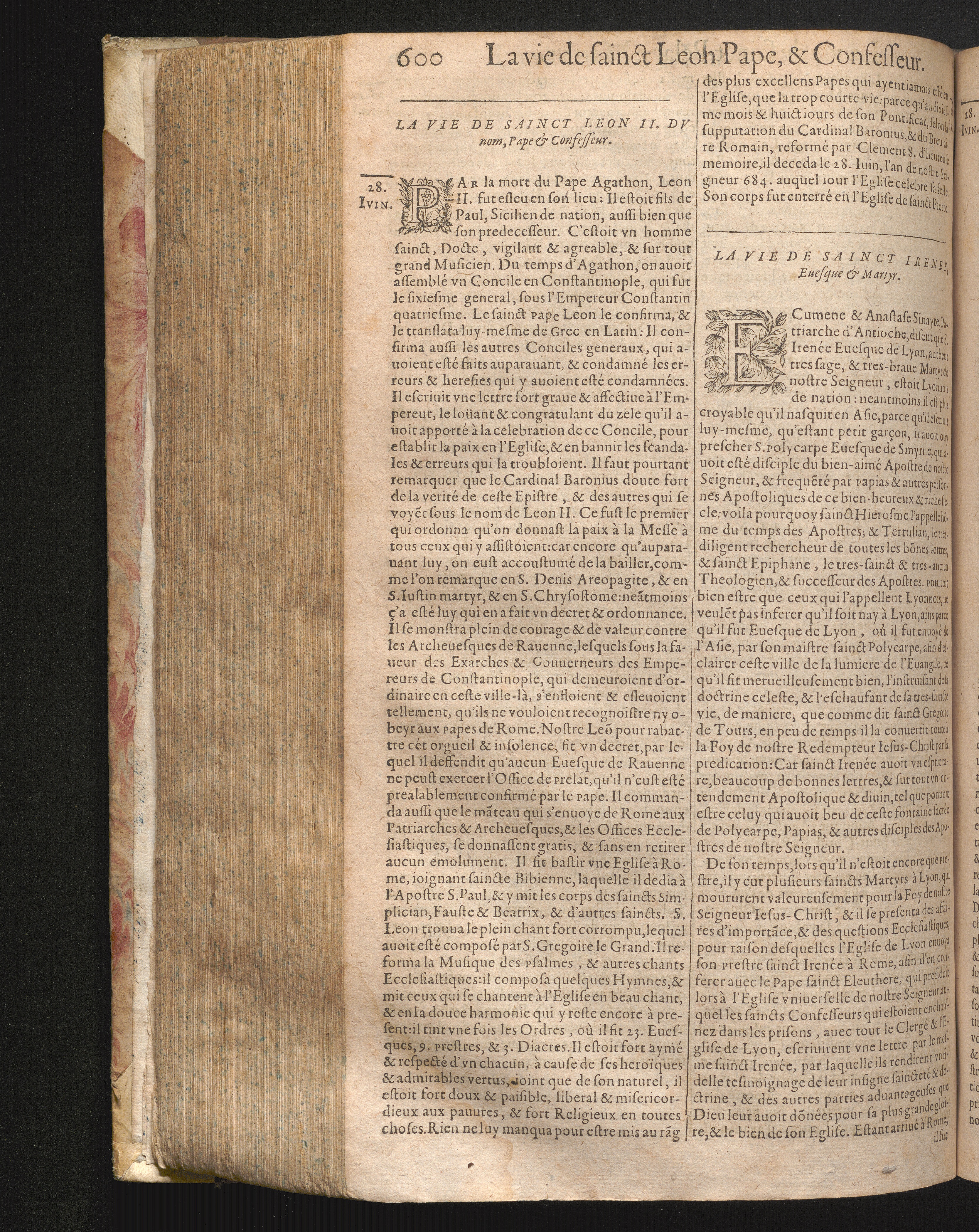 XXVIII La vie de sainct Irenée, Euesque & martyr.