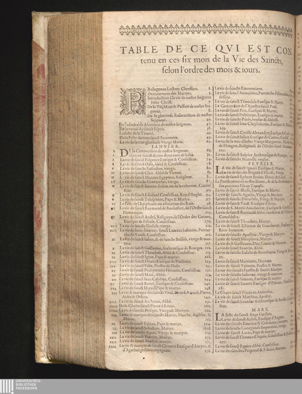 Table De Ce Qvi Est Contenu en ces six mois de la Vie des Saincts, selon l'ordre[...]