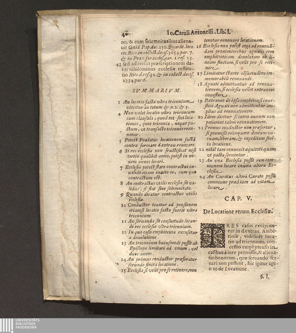 Tractatvs De Regimine Ecclesiae Episcopalis In Octo Libros Distribvtvs : Quorum quatuor in hac Prima Parte, reliqui in Secunda continentur, Vbi omnia, quae ad forum Ecclesiasticum praecipuè spectant, exactè, ac dilucidè pertractantur. Opus sanè vtilissimum, atque omnibus Episcopis, Archiepiscopis, eorumque Vicarijs, Inquisitoribus, Regularium Superioribus, ac caeteris personis Ecclesiasticis, Iudicibus quoq[ue] Soecularibus, alijsque in vtroque soro versantibus maximè necessarium ... / Avctore Io. Carolo Antonello Sac. Theol. Ac I. V. Doct. Veliterno Prothonot. Apost. eiusdemque Ciuitatis Archipresb.