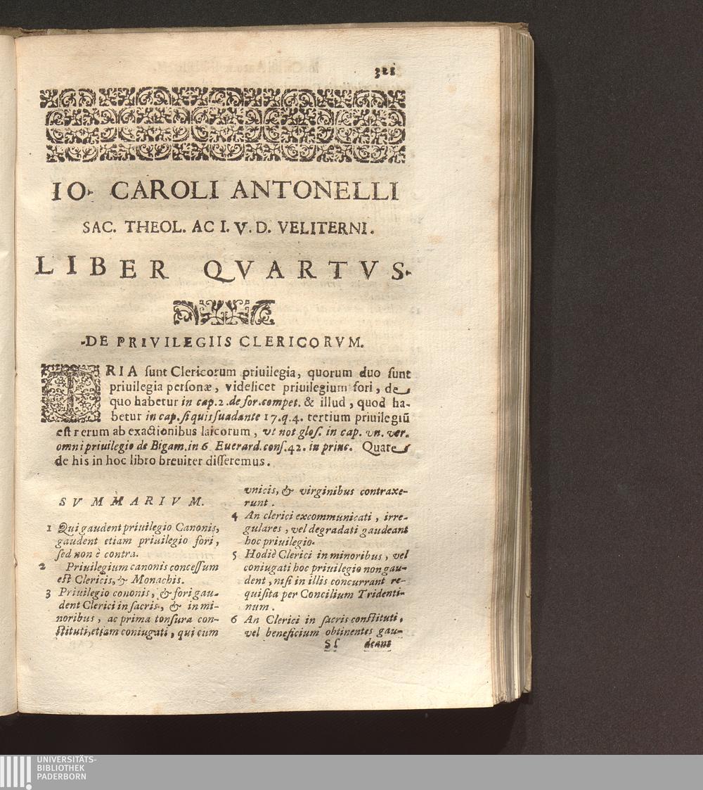 Tractatvs De Regimine Ecclesiae Episcopalis In Octo Libros Distribvtvs : Quorum quatuor in hac Prima Parte, reliqui in Secunda continentur, Vbi omnia, quae ad forum Ecclesiasticum praecipuè spectant, exactè, ac dilucidè pertractantur. Opus sanè vtilissimum, atque omnibus Episcopis, Archiepiscopis, eorumque Vicarijs, Inquisitoribus, Regularium Superioribus, ac caeteris personis Ecclesiasticis, Iudicibus quoq[ue] Soecularibus, alijsque in vtroque soro versantibus maximè necessarium ... / Avctore Io. Carolo Antonello Sac. Theol. Ac I. V. Doct. Veliterno Prothonot. Apost. eiusdemque Ciuitatis Archipresb.