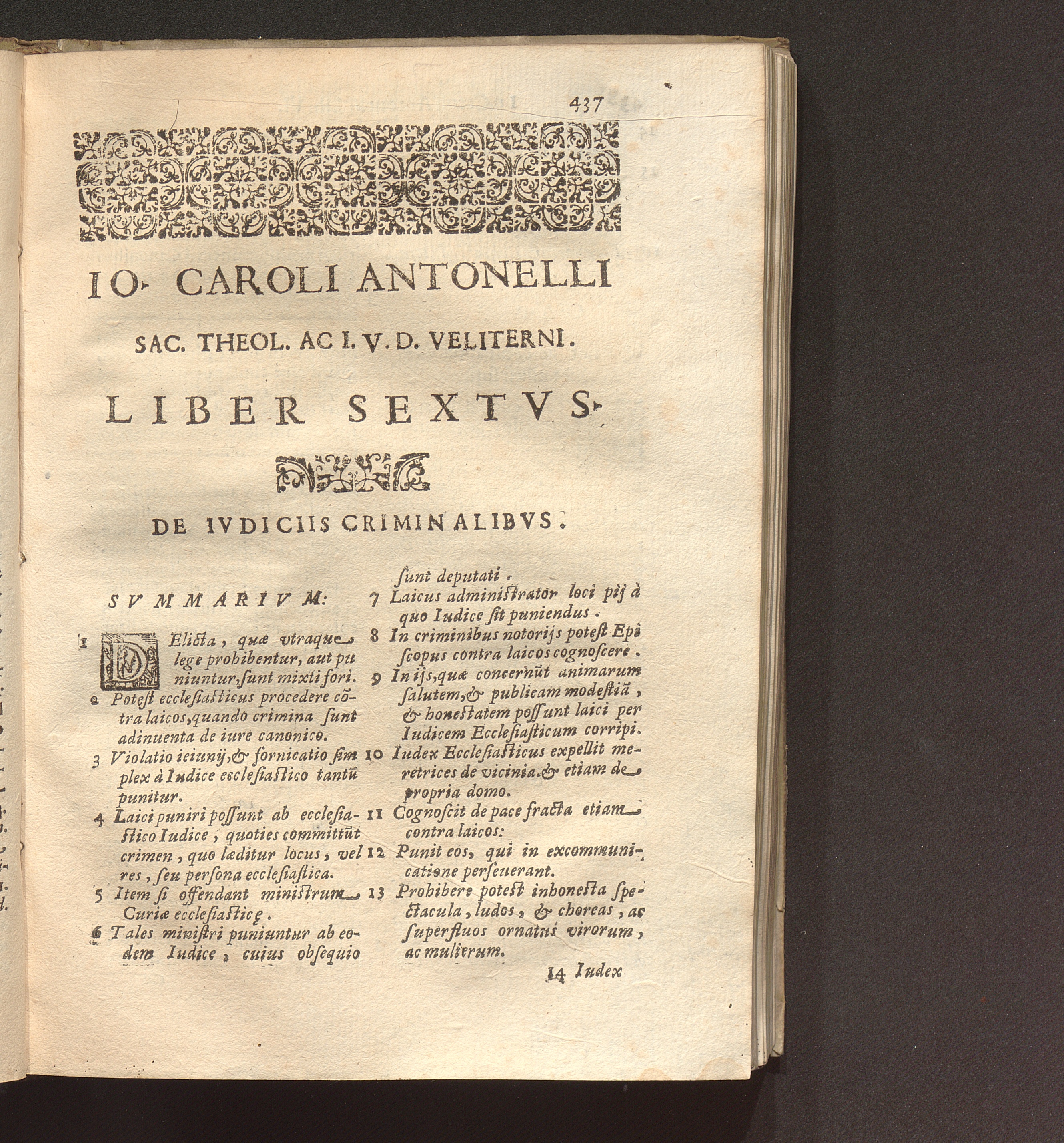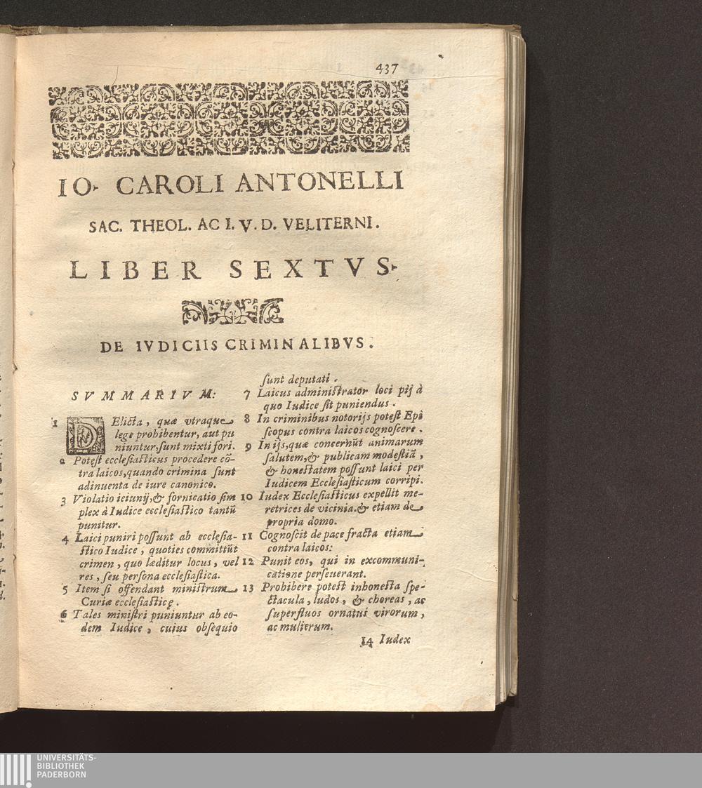 Tractatvs De Regimine Ecclesiae Episcopalis In Octo Libros Distribvtvs : Quorum quatuor in hac Prima Parte, reliqui in Secunda continentur, Vbi omnia, quae ad forum Ecclesiasticum praecipuè spectant, exactè, ac dilucidè pertractantur. Opus sanè vtilissimum, atque omnibus Episcopis, Archiepiscopis, eorumque Vicarijs, Inquisitoribus, Regularium Superioribus, ac caeteris personis Ecclesiasticis, Iudicibus quoq[ue] Soecularibus, alijsque in vtroque soro versantibus maximè necessarium ... / Avctore Io. Carolo Antonello Sac. Theol. Ac I. V. Doct. Veliterno Prothonot. Apost. eiusdemque Ciuitatis Archipresb.