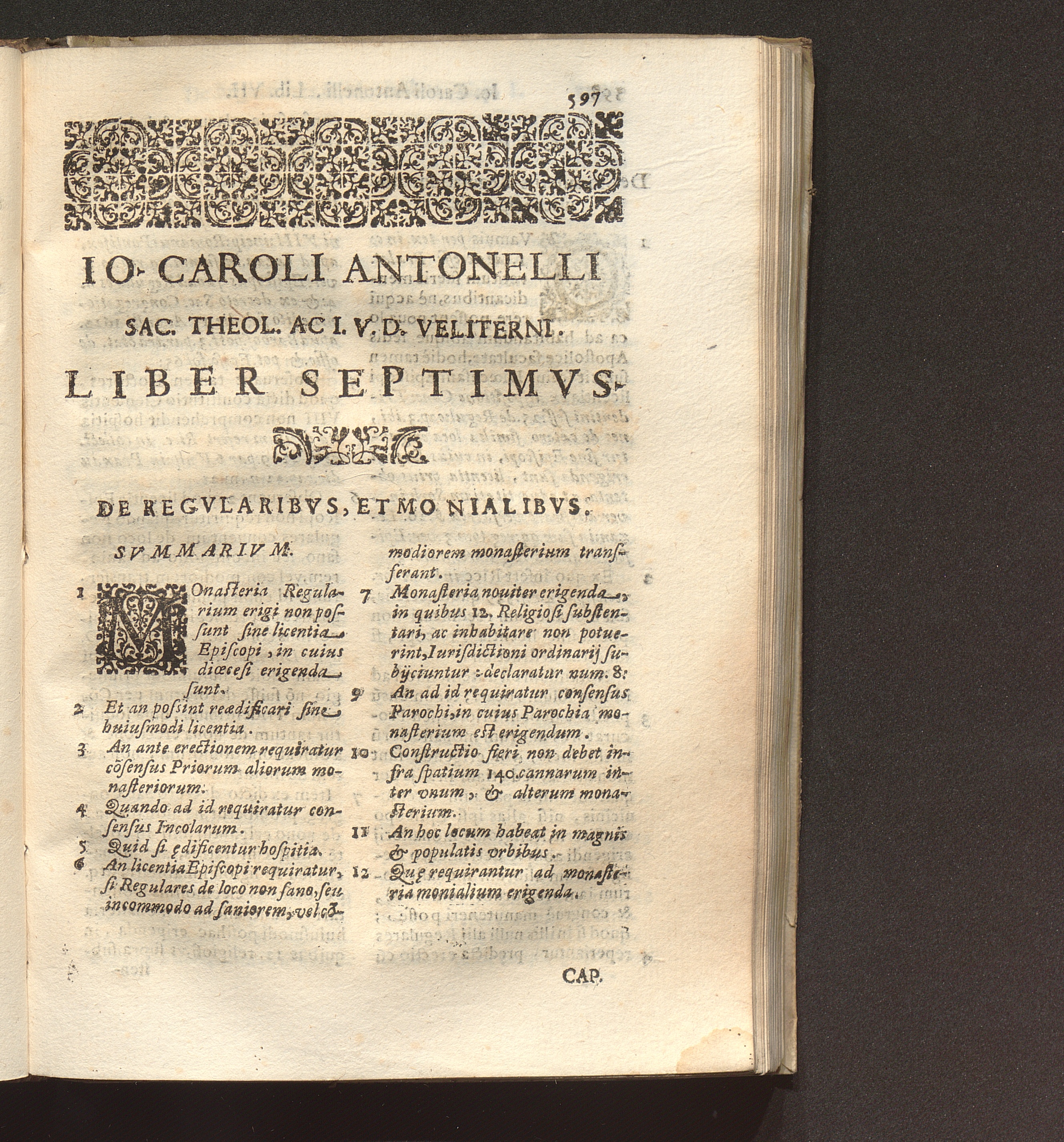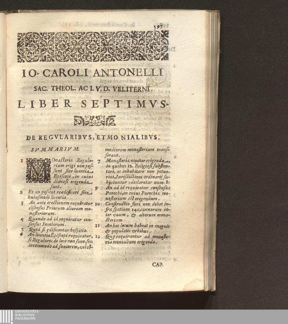Tractatvs De Regimine Ecclesiae Episcopalis In Octo Libros Distribvtvs : Quorum quatuor in hac Prima Parte, reliqui in Secunda continentur, Vbi omnia, quae ad forum Ecclesiasticum praecipuè spectant, exactè, ac dilucidè pertractantur. Opus sanè vtilissimum, atque omnibus Episcopis, Archiepiscopis, eorumque Vicarijs, Inquisitoribus, Regularium Superioribus, ac caeteris personis Ecclesiasticis, Iudicibus quoq[ue] Soecularibus, alijsque in vtroque soro versantibus maximè necessarium ... / Avctore Io. Carolo Antonello Sac. Theol. Ac I. V. Doct. Veliterno Prothonot. Apost. eiusdemque Ciuitatis Archipresb.