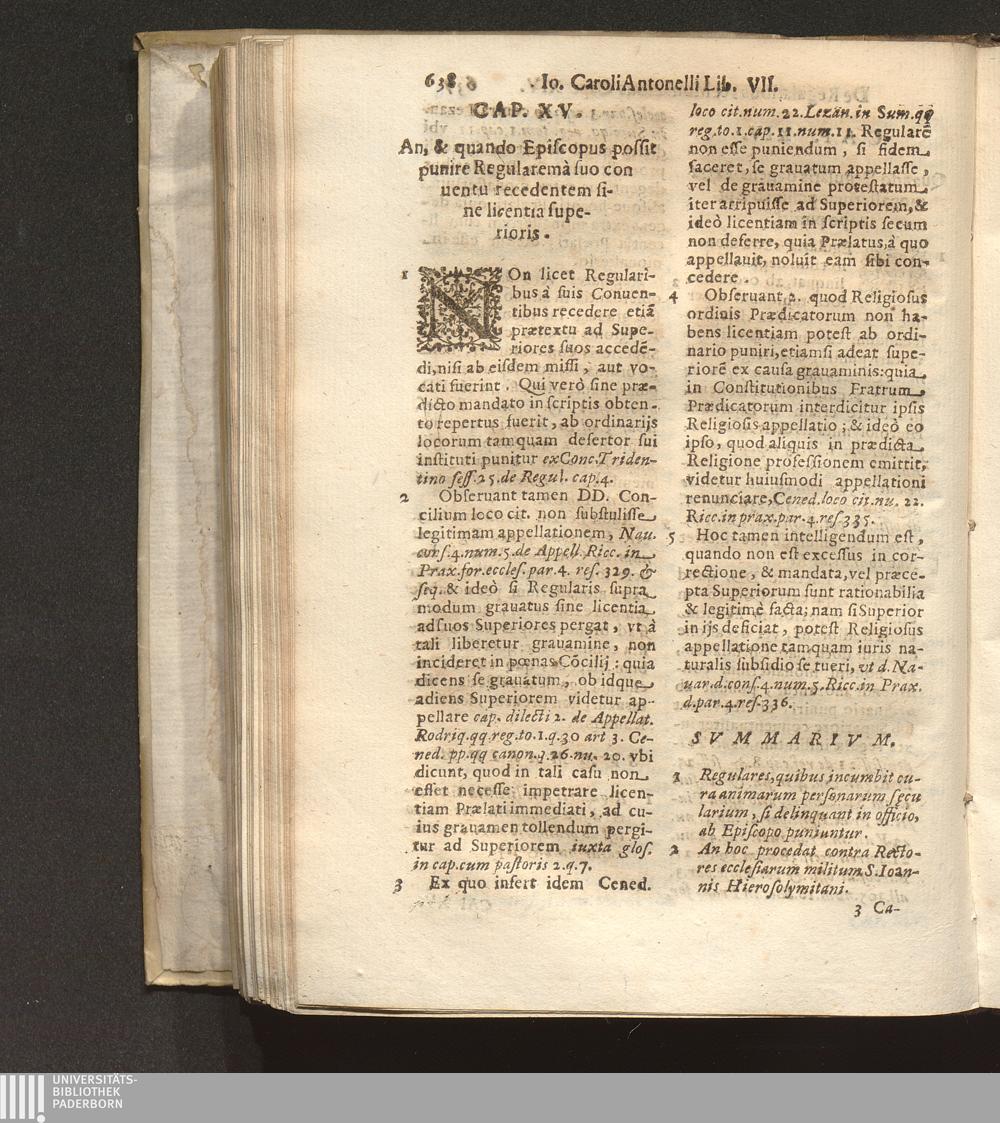 Tractatvs De Regimine Ecclesiae Episcopalis In Octo Libros Distribvtvs : Quorum quatuor in hac Prima Parte, reliqui in Secunda continentur, Vbi omnia, quae ad forum Ecclesiasticum praecipuè spectant, exactè, ac dilucidè pertractantur. Opus sanè vtilissimum, atque omnibus Episcopis, Archiepiscopis, eorumque Vicarijs, Inquisitoribus, Regularium Superioribus, ac caeteris personis Ecclesiasticis, Iudicibus quoq[ue] Soecularibus, alijsque in vtroque soro versantibus maximè necessarium ... / Avctore Io. Carolo Antonello Sac. Theol. Ac I. V. Doct. Veliterno Prothonot. Apost. eiusdemque Ciuitatis Archipresb.