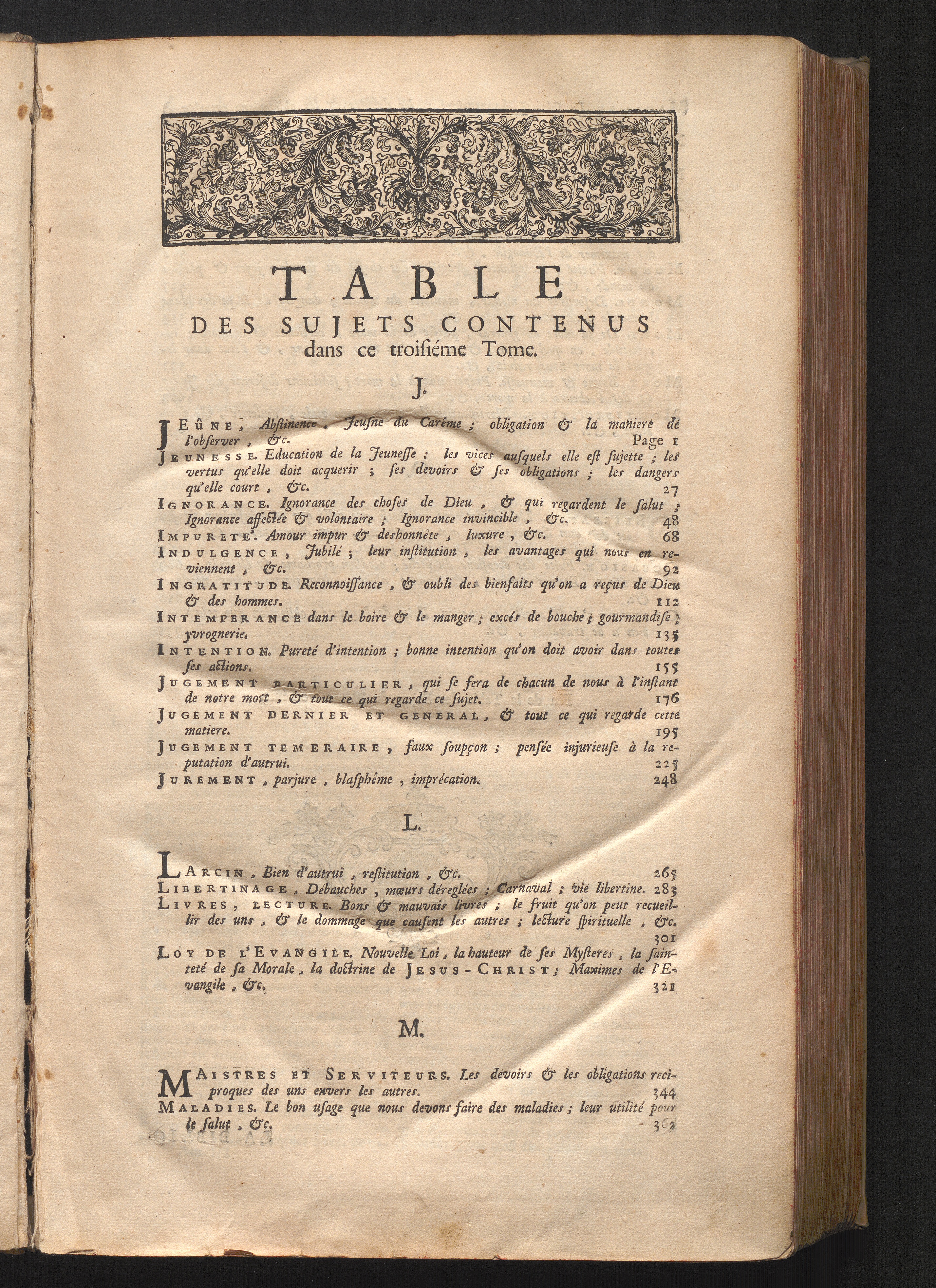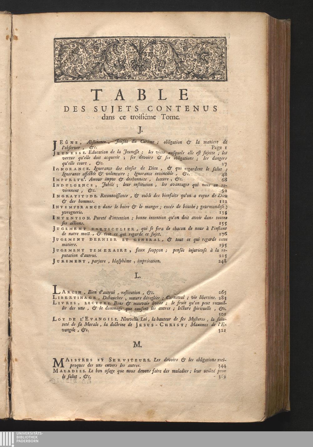 Table Des Sujets Contenus dans ce troisiéme Tome.