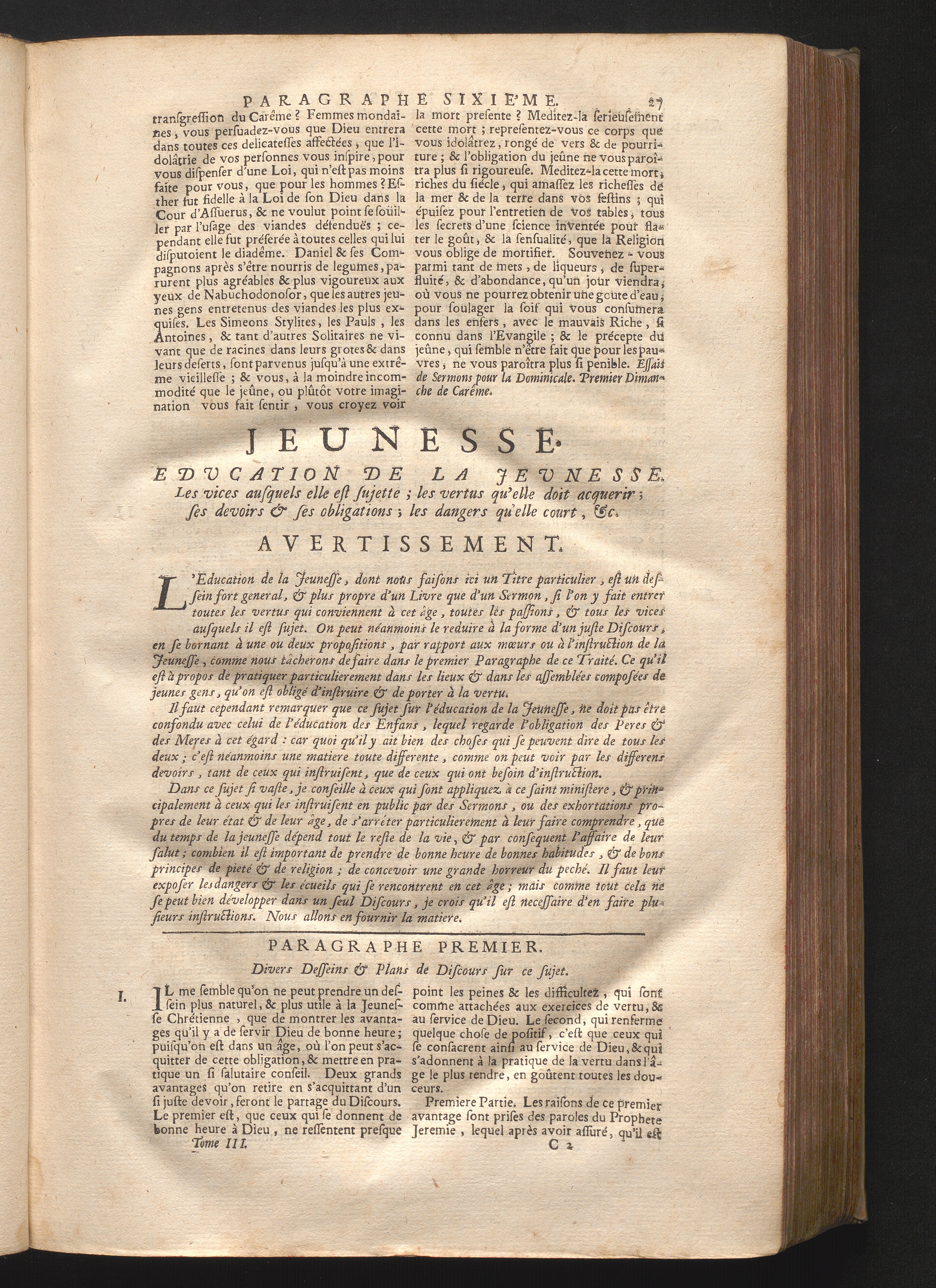 Jeunesse. Education de la Jeunesse; les vices ausquels elle est sujette; les vertus[...]