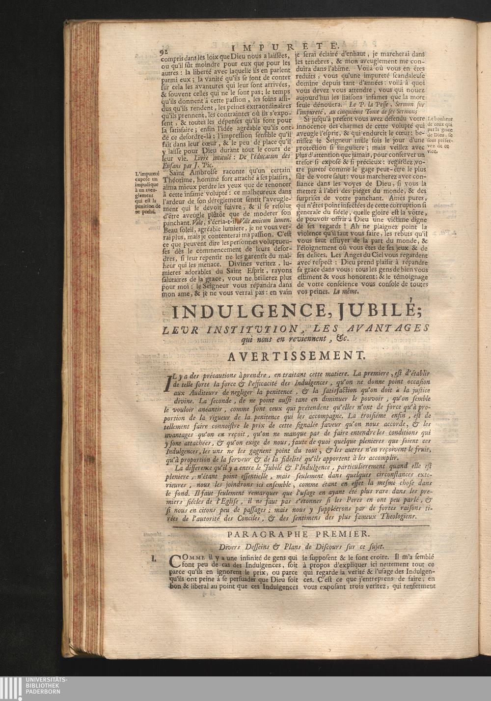 Indulgence, Jubilé; leur institution, les avantages qui nous en reviennent, &c.