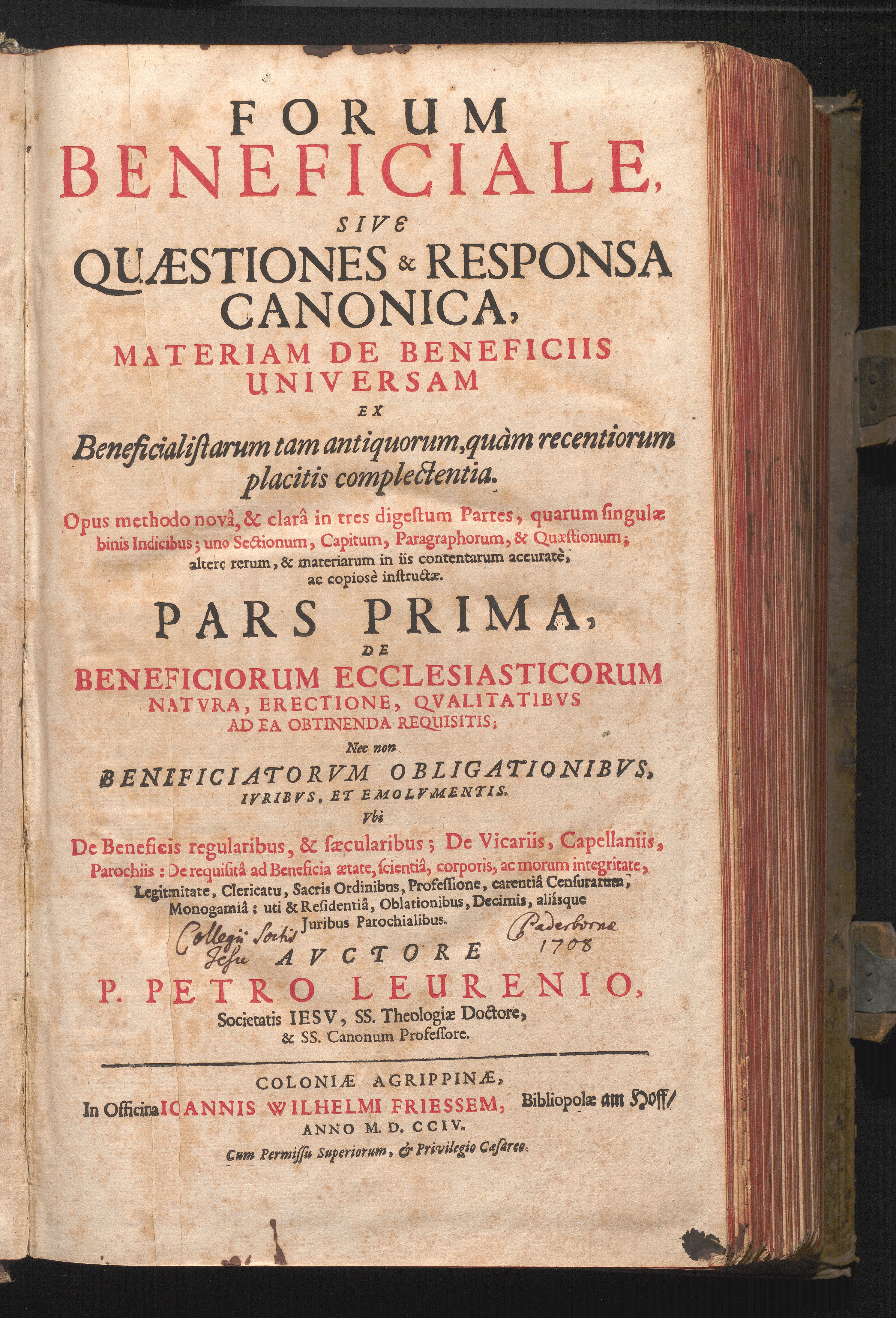 Forum Beneficiale, Sive Quæstiones & Responsa Canonica