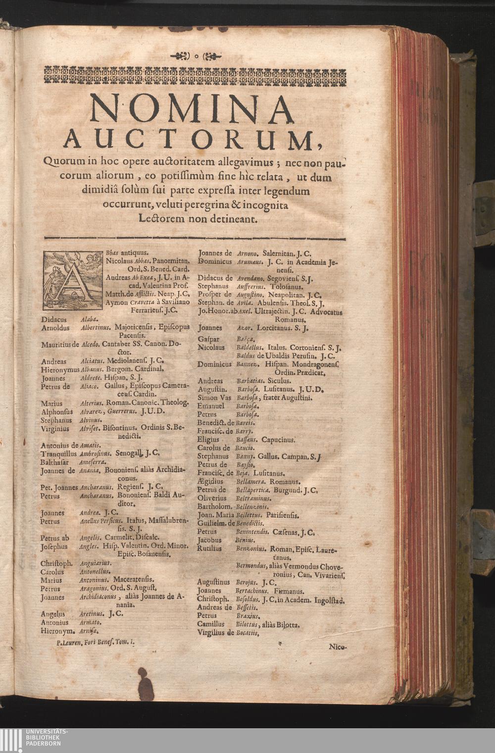 Nomina Auctorum, Quorum in hoc opere auctoritatem allegavimus; nec non paucorum aliorum,[...]