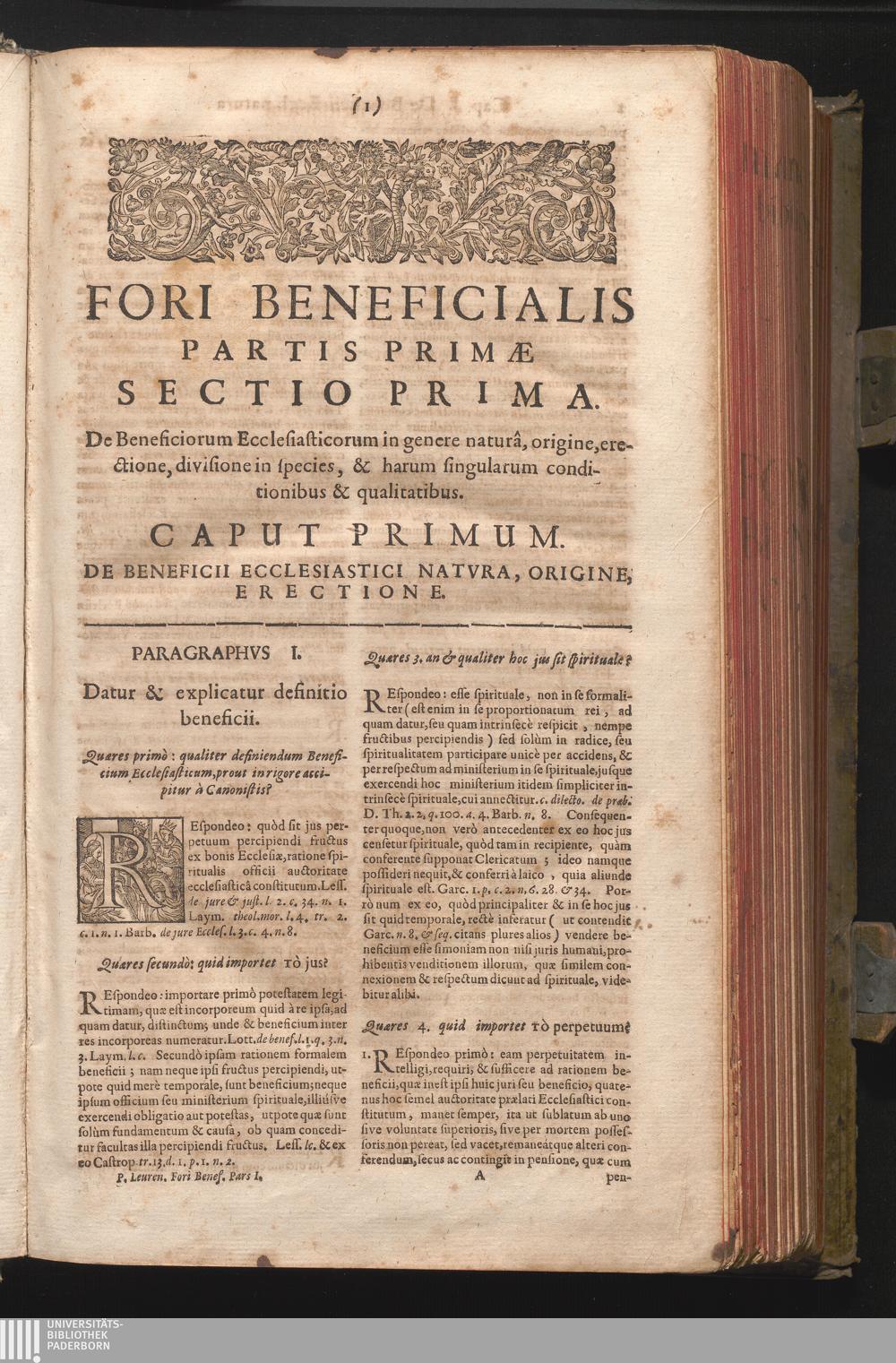 Pars Prima (1704) De Beneficiorum Ecclesiasticorum Natvra, Erectione, Qvalitatibvs Ad Ea Obtinenda Requisitis ...