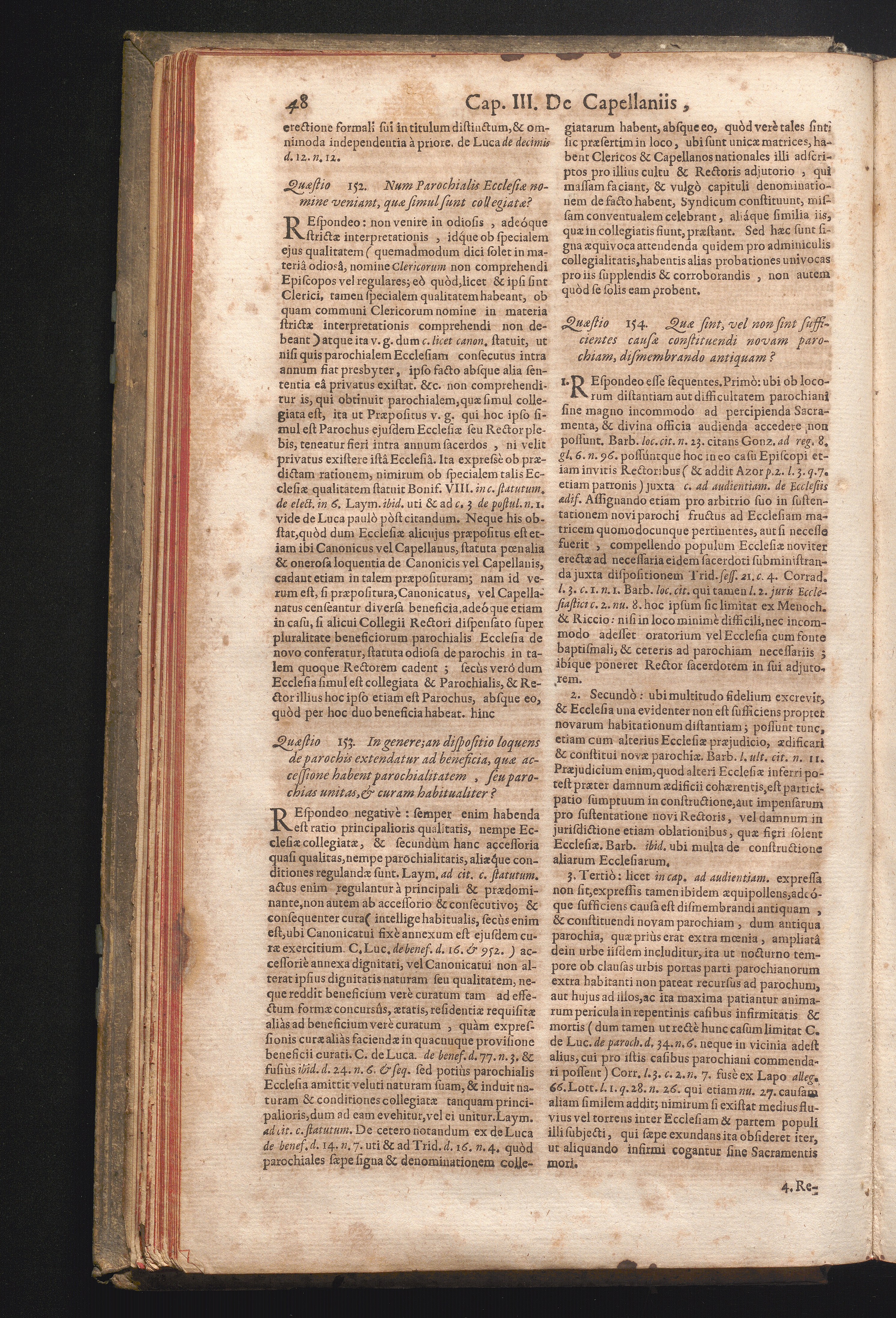 154. Quæ sint vel non sint sufficientes causæ constituendi novam parochiam, dismembrando[...]