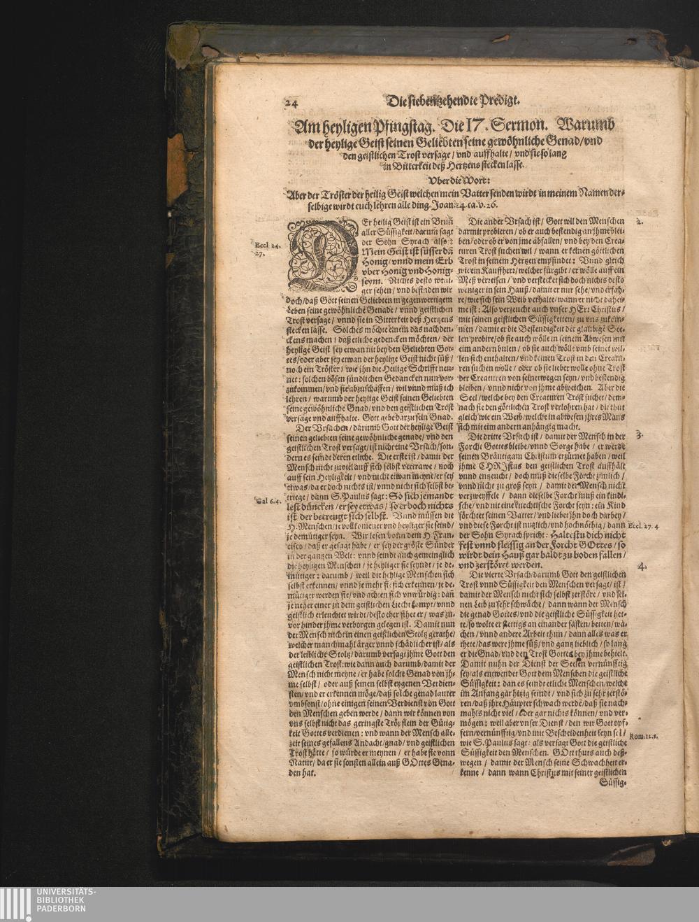 XVII. Warumb der H. Geist seinen Geliebten seine gewöhnliche Gnad/ vnd den geistlichen[...]