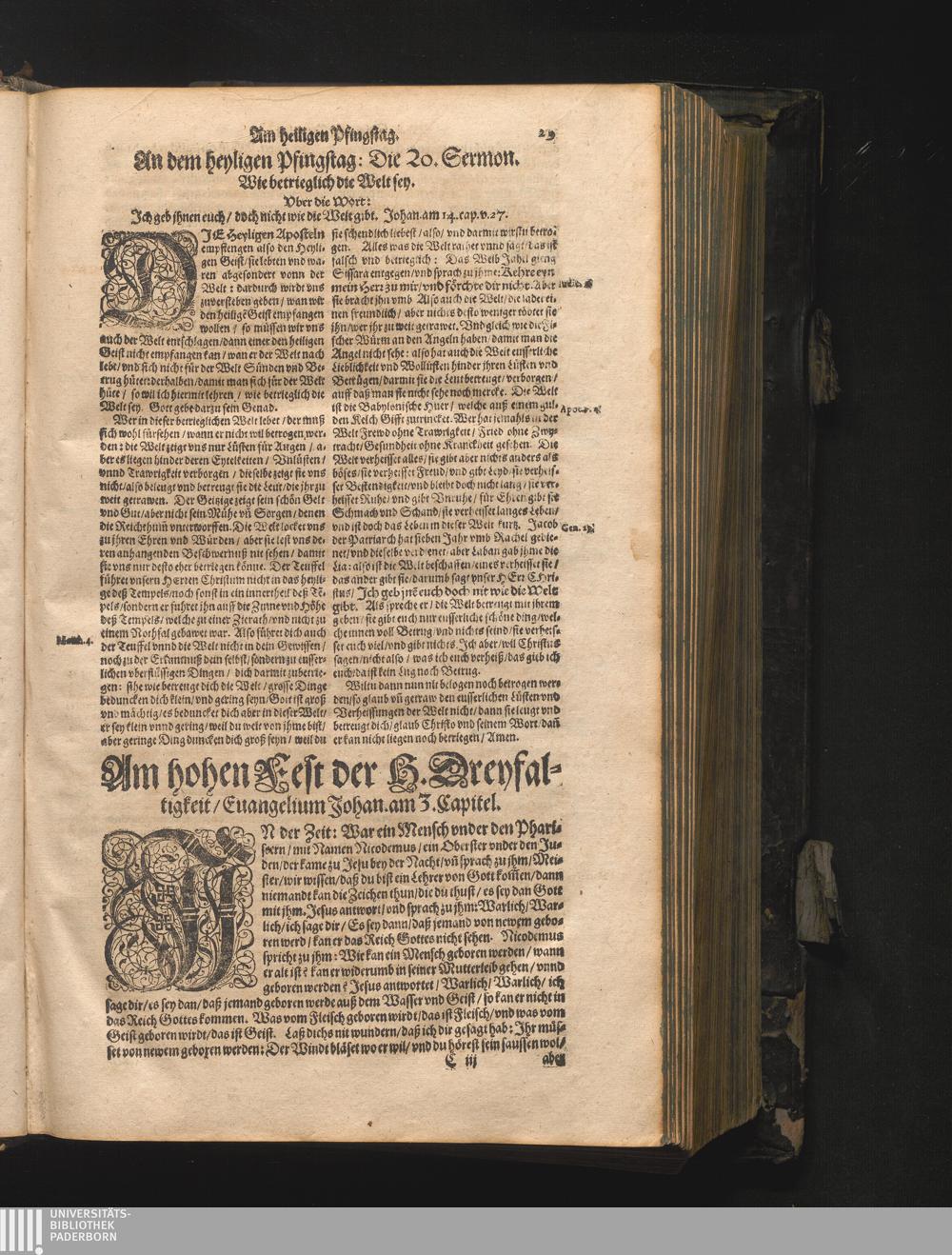 Am hohen Fest der H. Dreyfaltigkeit/ Euangelium Johan. am 3. Capit.
