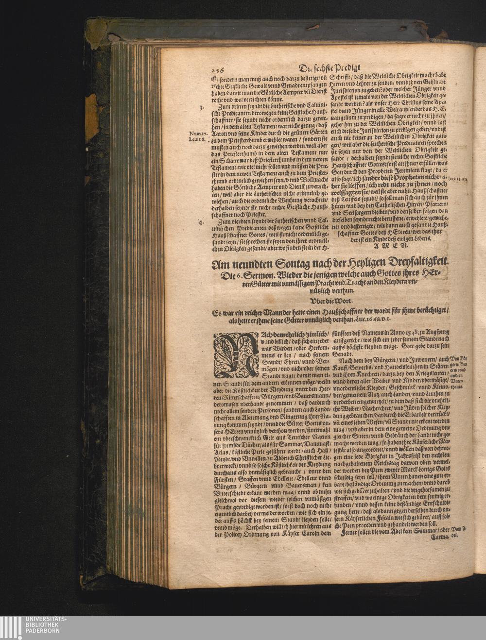 Am 9. Sontag nach der H. Dreyfaltig: Euangelium Luc. am 6. Capitel.