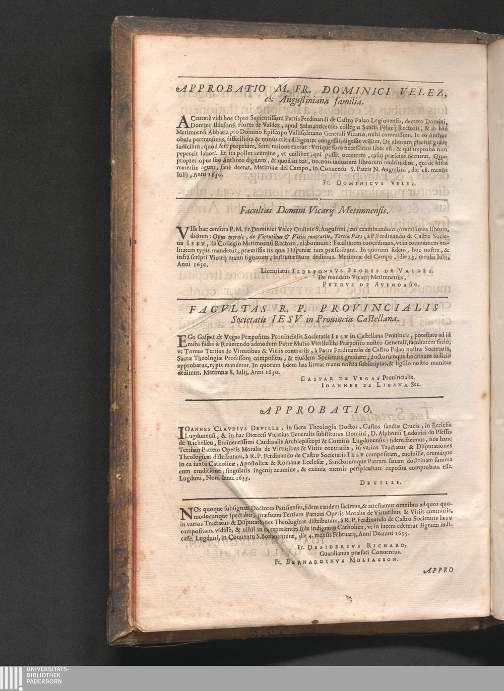 Approbatio M. Fr. Dominici Velez, ex Augustiniana familia. [etc.]