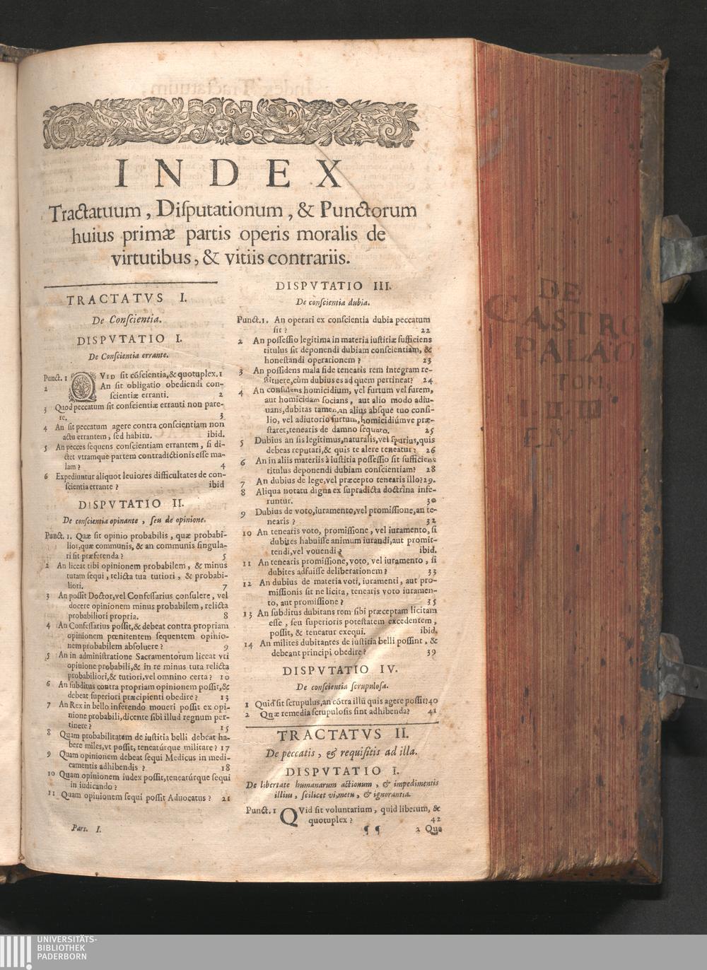 Index Tractatuum, Disputationum, & Punctorum huius primæ partis operis moralis de[...]