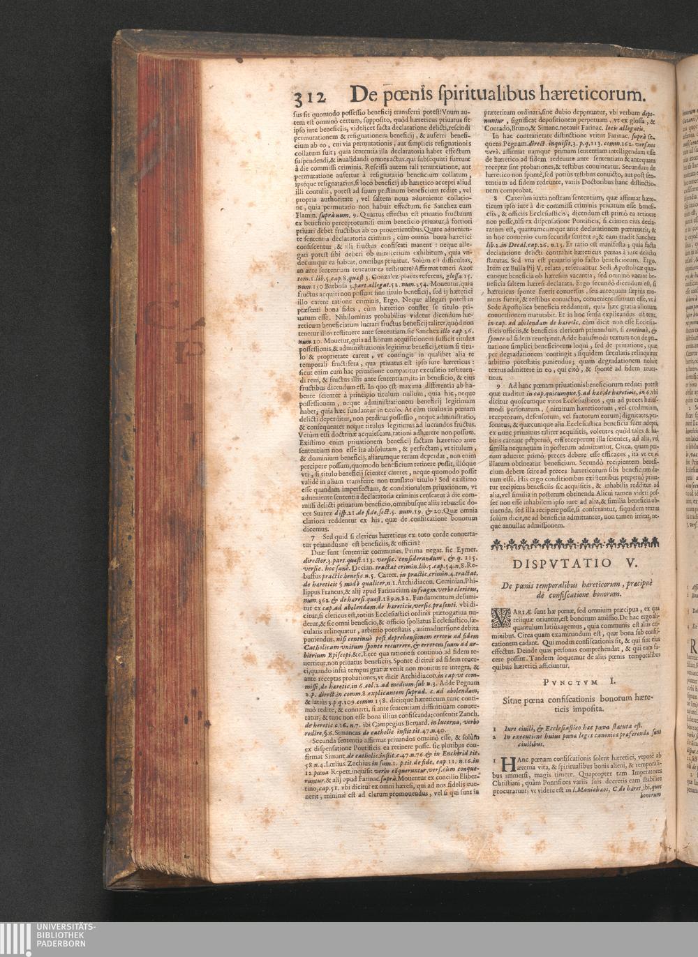 Dispvtatio V. De pœnis temporalibus hæreticorum præcipuè de confiscatione bonoru[...]