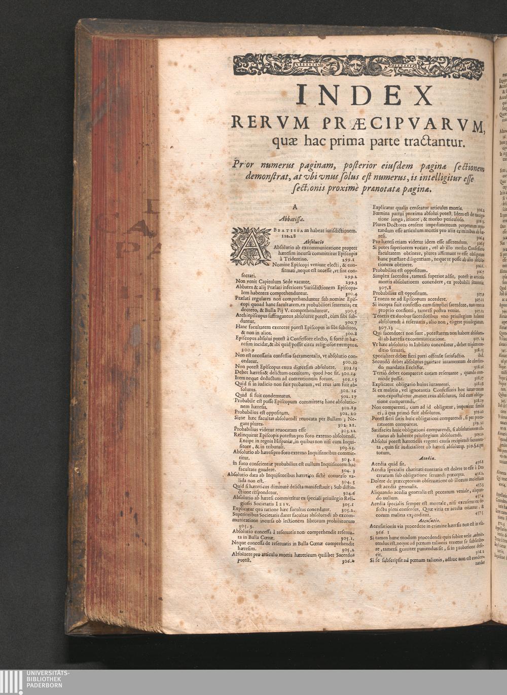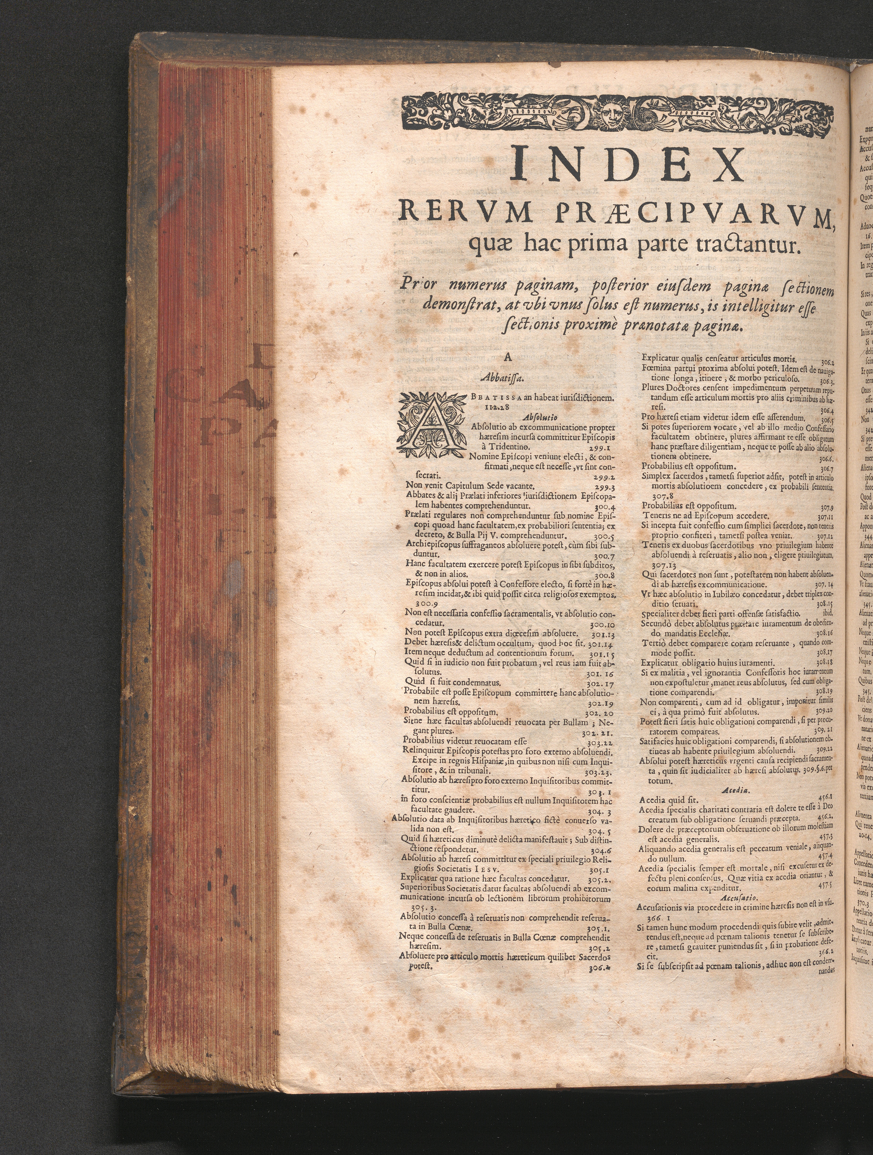 Index Rervm Præcipvarvm, quæ hac prima parte tractantur.