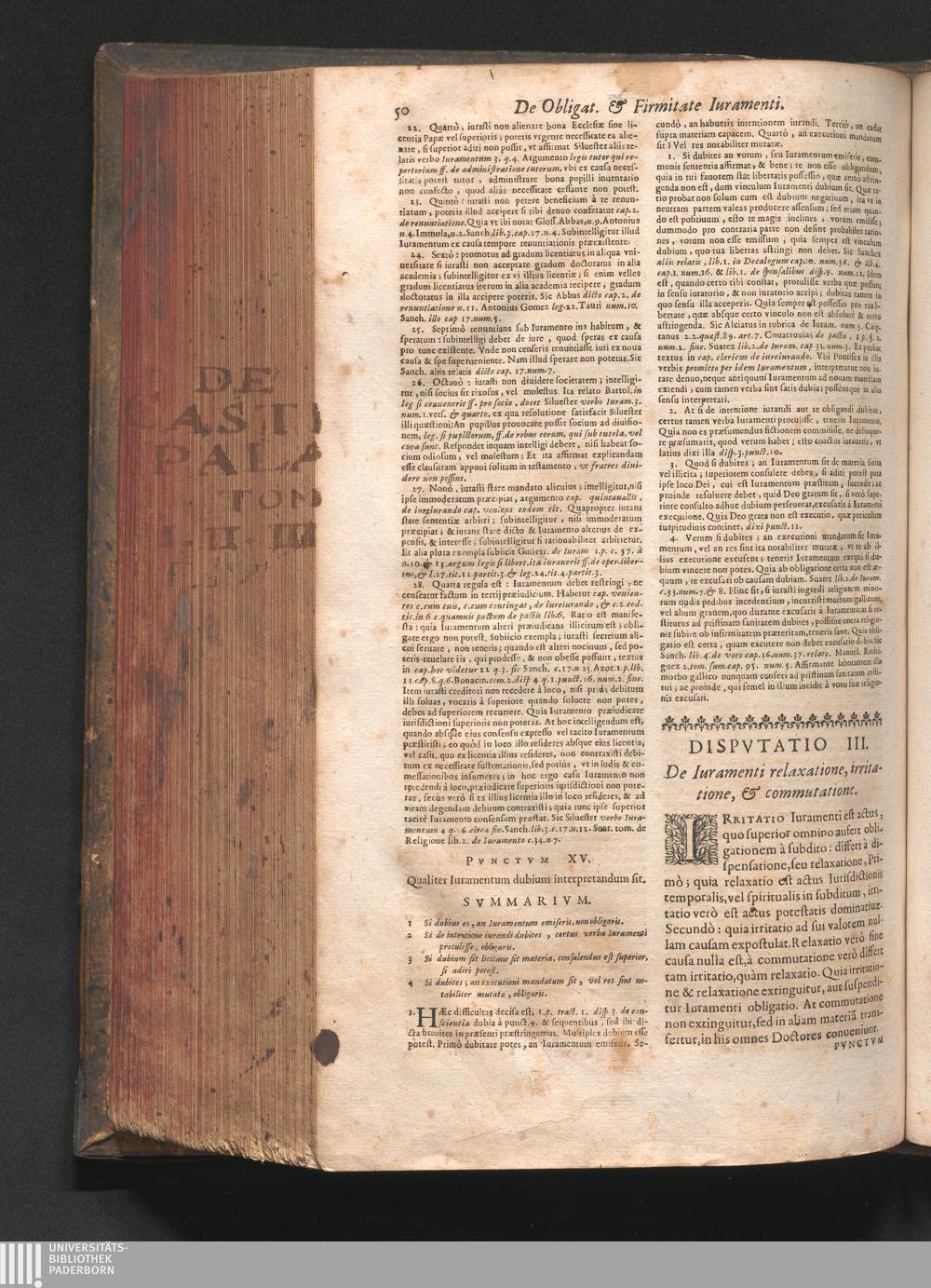 Pars Tertia (1669) De Virtute Religionis, Et Ei Annexis; Continens quatuor Tractatus Theologiæ Moralis præcipuos. Primus, in ordine decimusquartus, de Iurameuto, & Adiuratione. Secundus, de Voto. Tertius, & charior Authori, de statu Religioso. Quartus, de vitiis oppositis Religioni