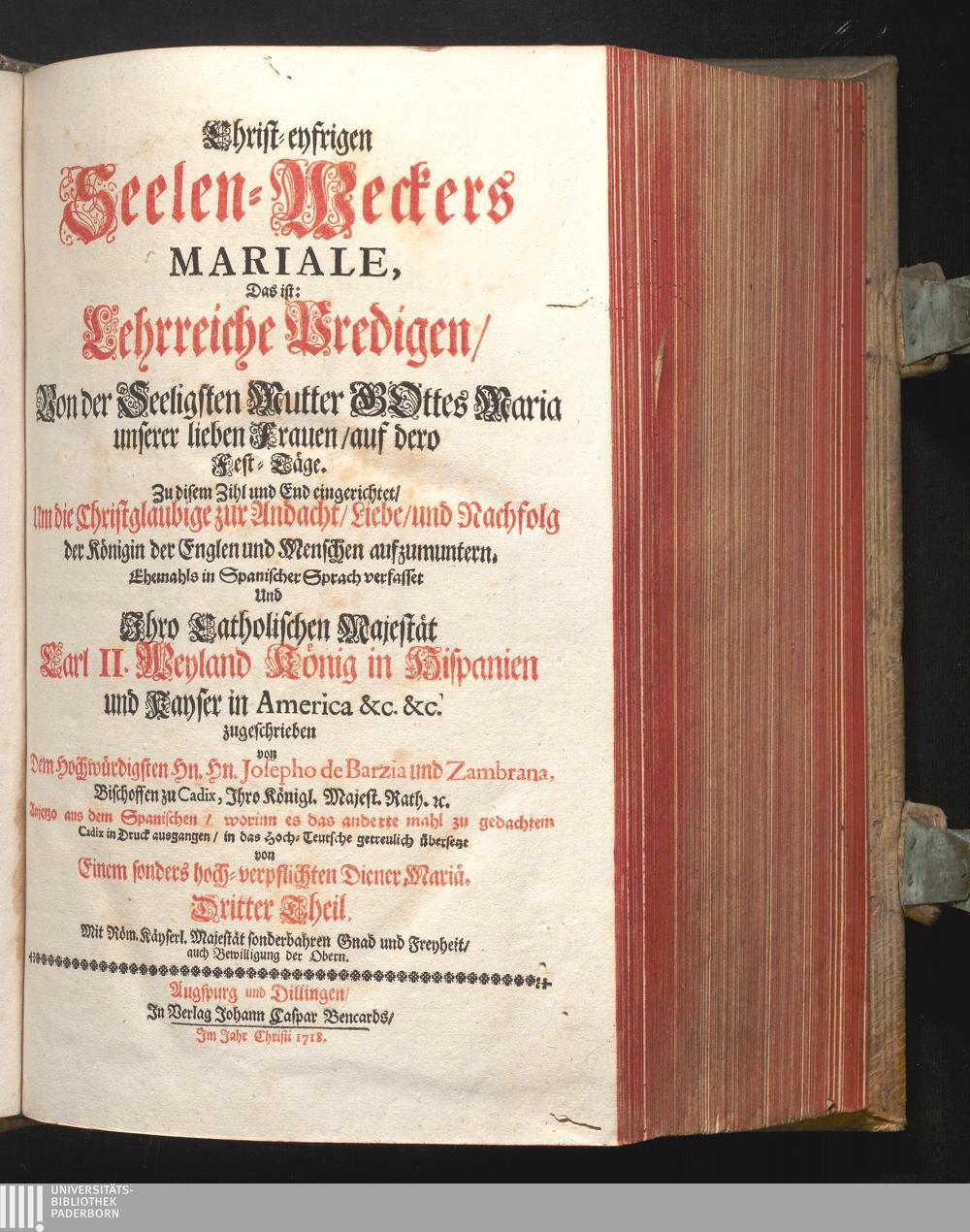 Dritter Theil, Mariale (1718) Das ist: Lehrreiche Predigen/ Von der Seeligsten Mutter Gottes Maria unserer lieben Frauen/ auf dero Fest-Täge