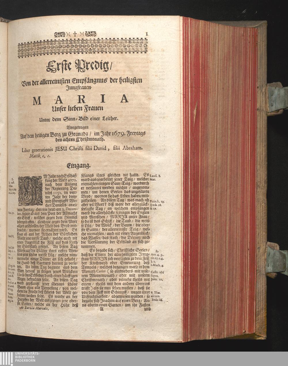 Erste Predig/ Von der Allerreinisten Empfängnuß der Heiligisten Jungfrauen Mariae.[...]