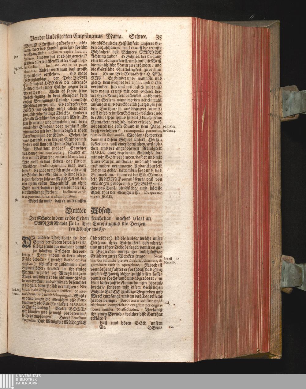 Dritter Absatz. Der Schnee/ indem er die Erden fruchtbar machet/ zeiget an Mariam/[...]