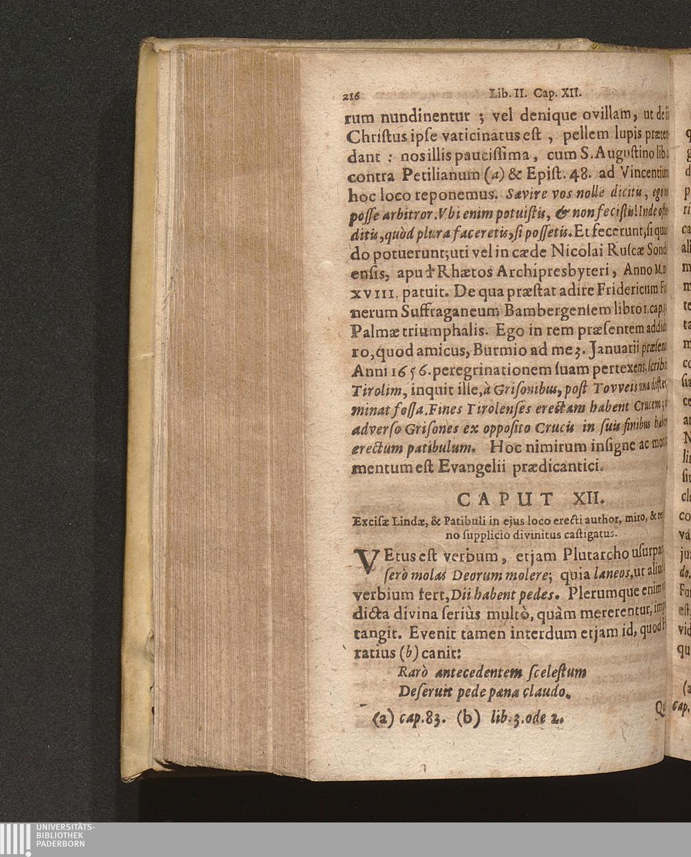 XII. Excisae Lindae, & patibuli in ejus loco erecti author, miro & repentino supplicio[...]