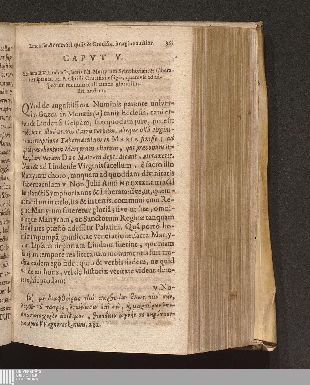 V. Sacellum B. virg. Lindensis, sacris BB. Martyrum Symphoriani & liberatae Lipsanis,[...]