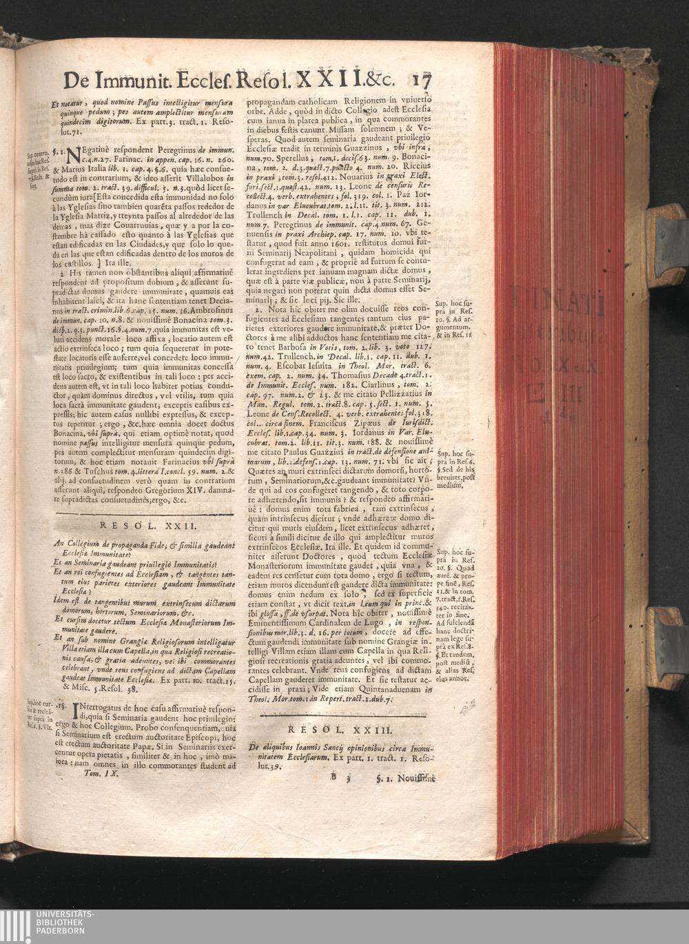 23. De aliquibus Ioannis Sancij opinionibus circa Immunitatem Ecclesiarum. Ex part.[...]