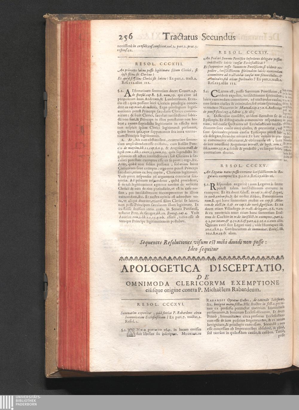 316. Svmmatim exponitur, quid sentiat P. Rabardeus circa Immunitatem Ecclesiasticam?[...]