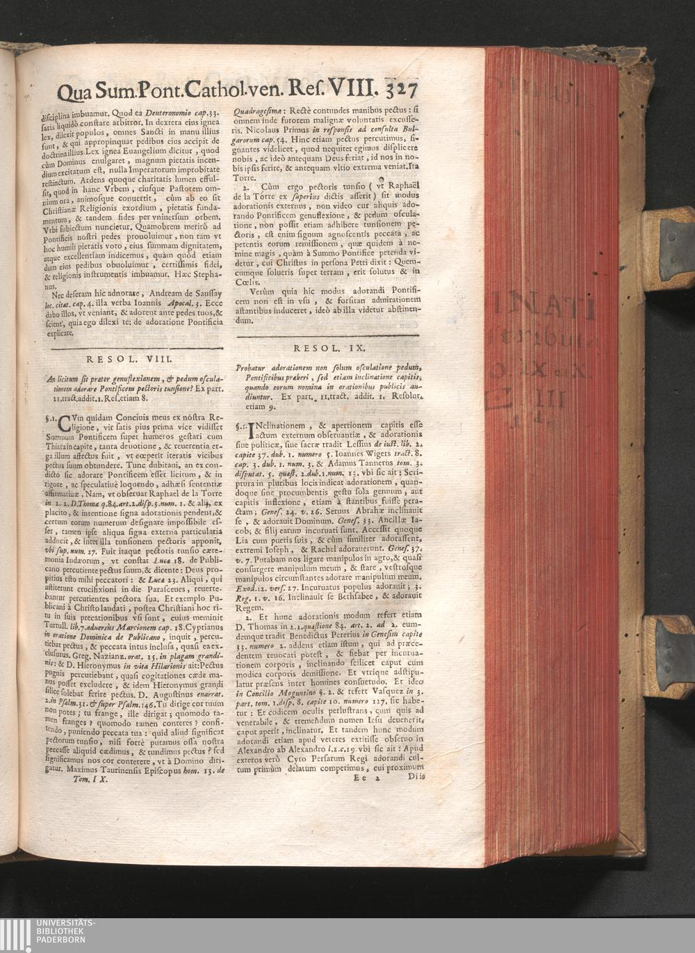 9. Probatur adorationem non solum osculatione pedum, Pontificibus præberi, sed etiam[...]