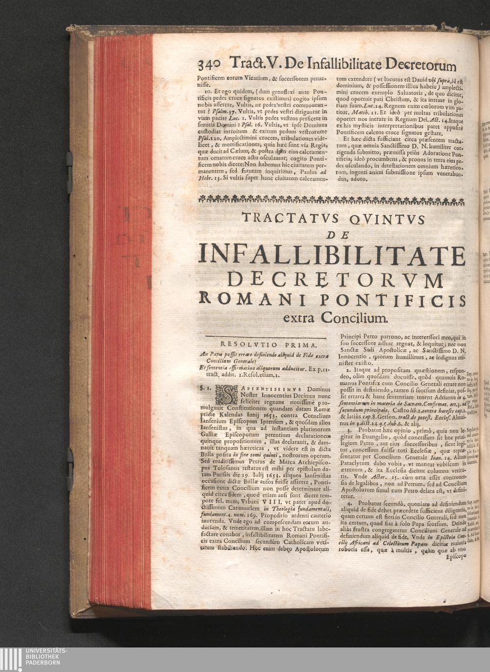 Tractatvs V. De Infallibilitate Decretorum Romani Pontificis extra Concilium.