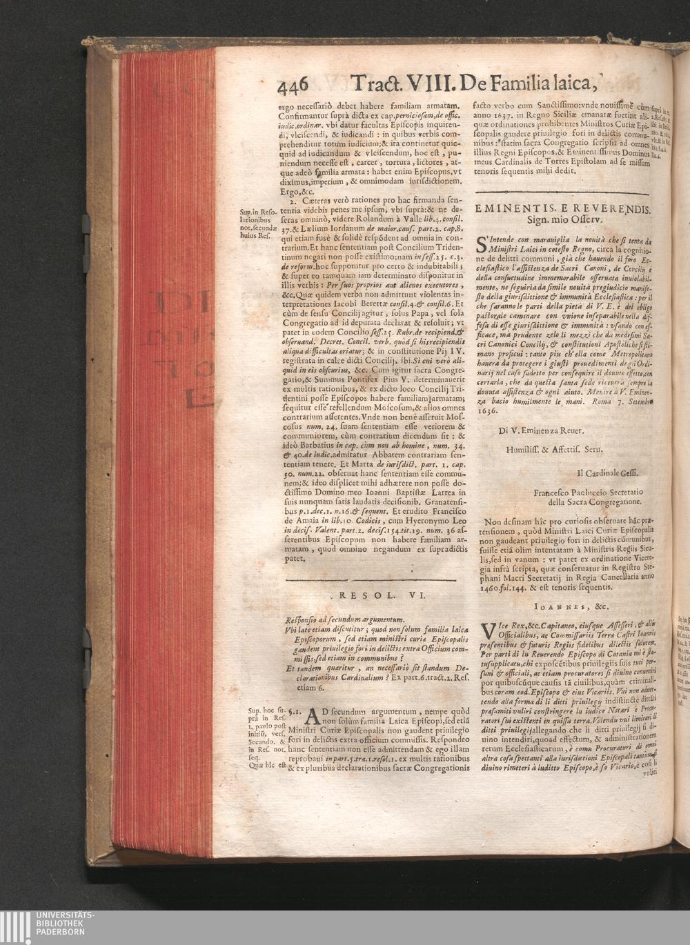 Tractatvs VIII. De Familia Laica Nuntiorum Apostolicorum Apologetica Disceptatio.[...]