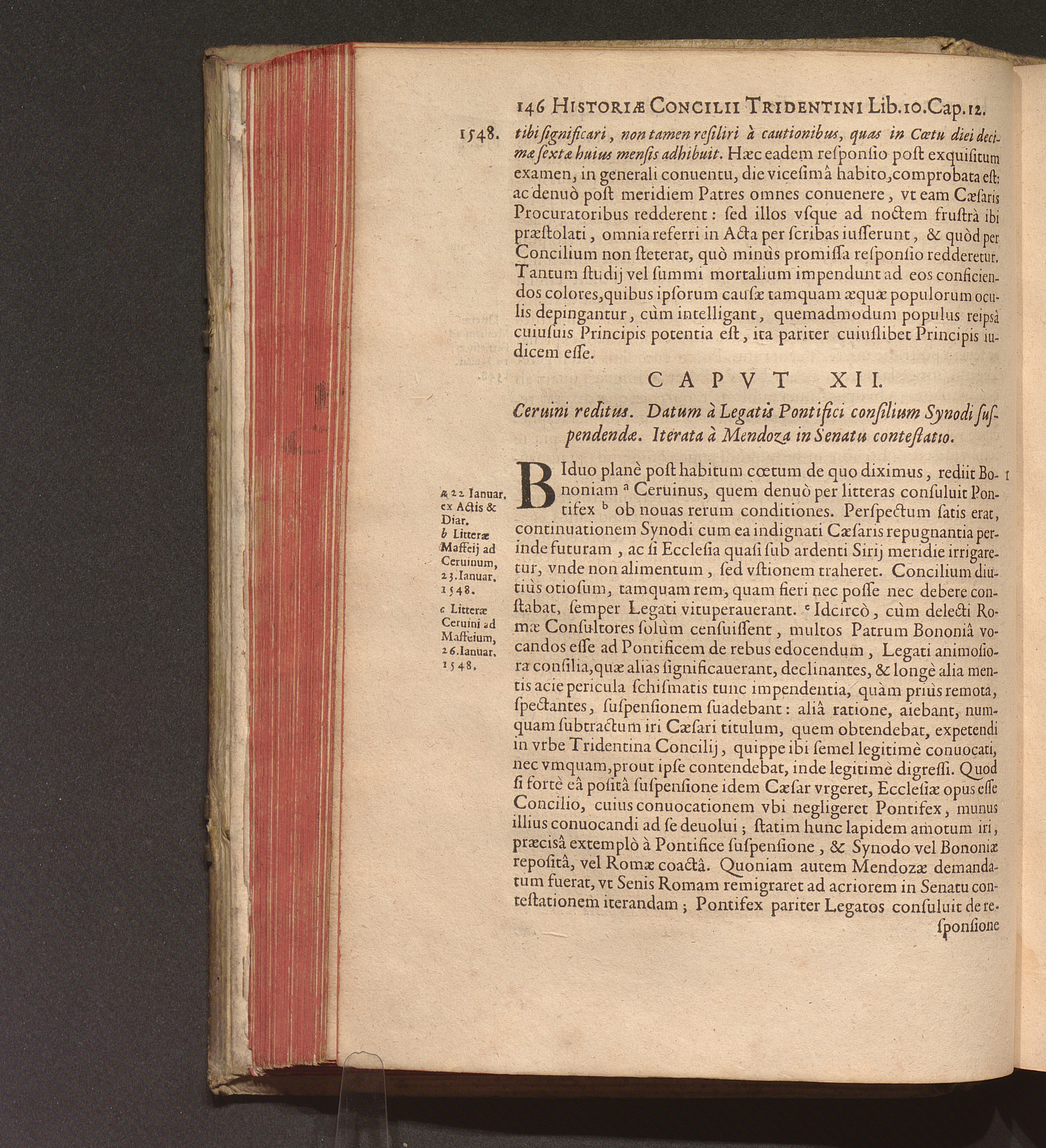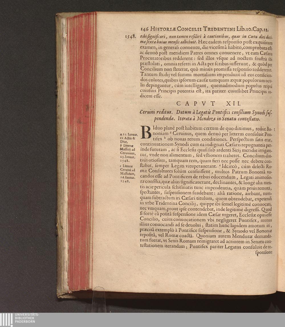 Capvt XII. Ceruini reditus. Datum à Legatis Pontifici consilium Synodi suspendendæ.[...]