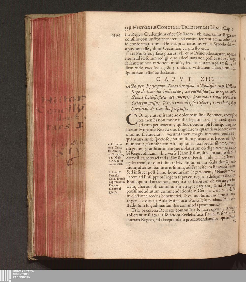 Capvt XIII. Acta per Episcopum Tarracinensem à Pontifice cum Hispaniæ Rege de Concilio[...]