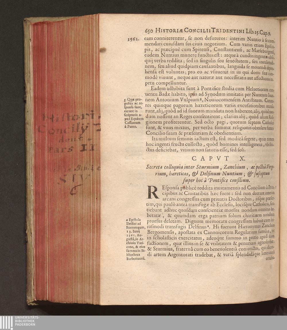 Capvt X. Secreta colloquia inter Sturmium, Zanchium, ac posteà Vergerium, hæreticos,[...]