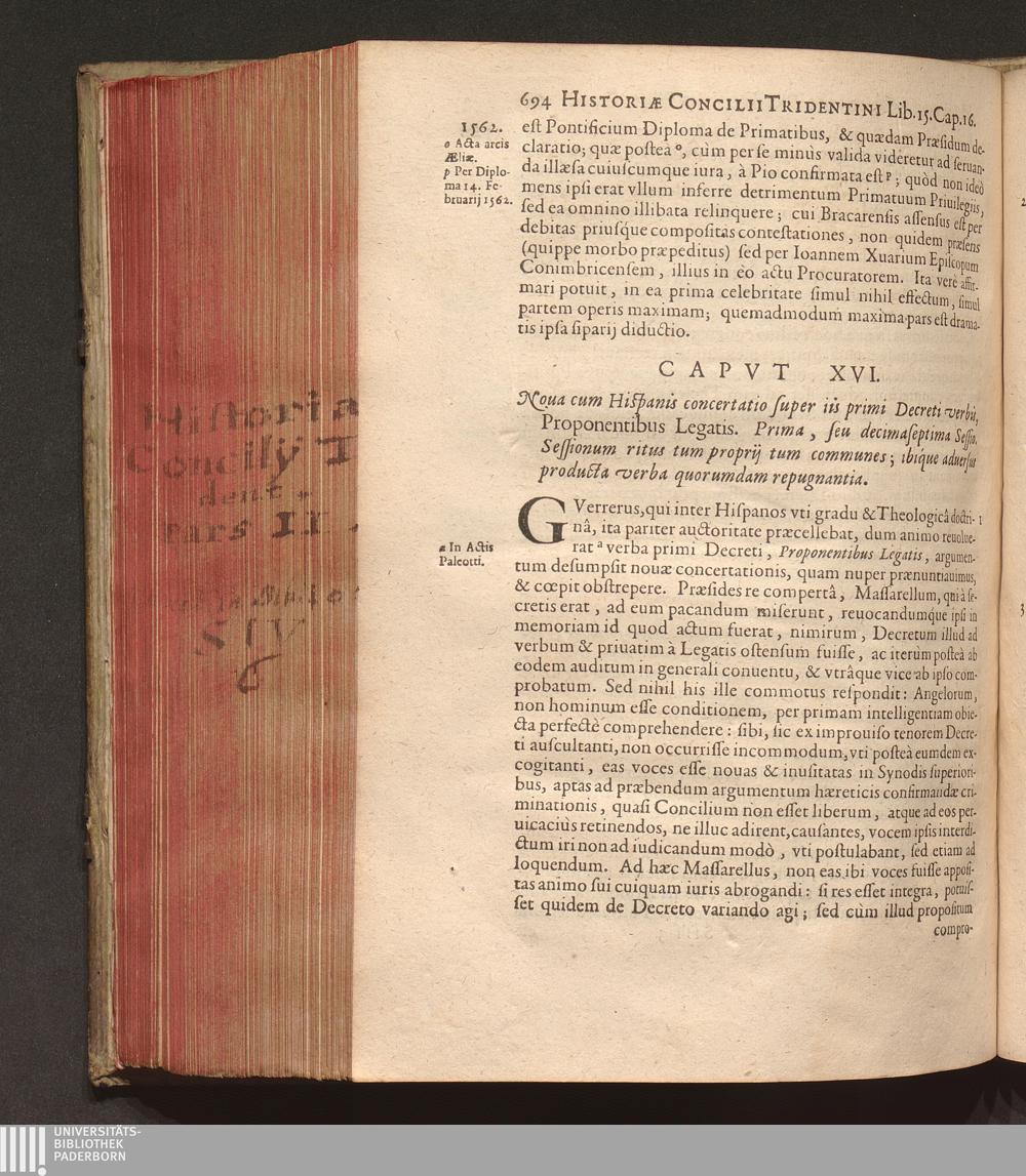 Historiæ Concilii Tridentini Liber Decimvsquvintvs.