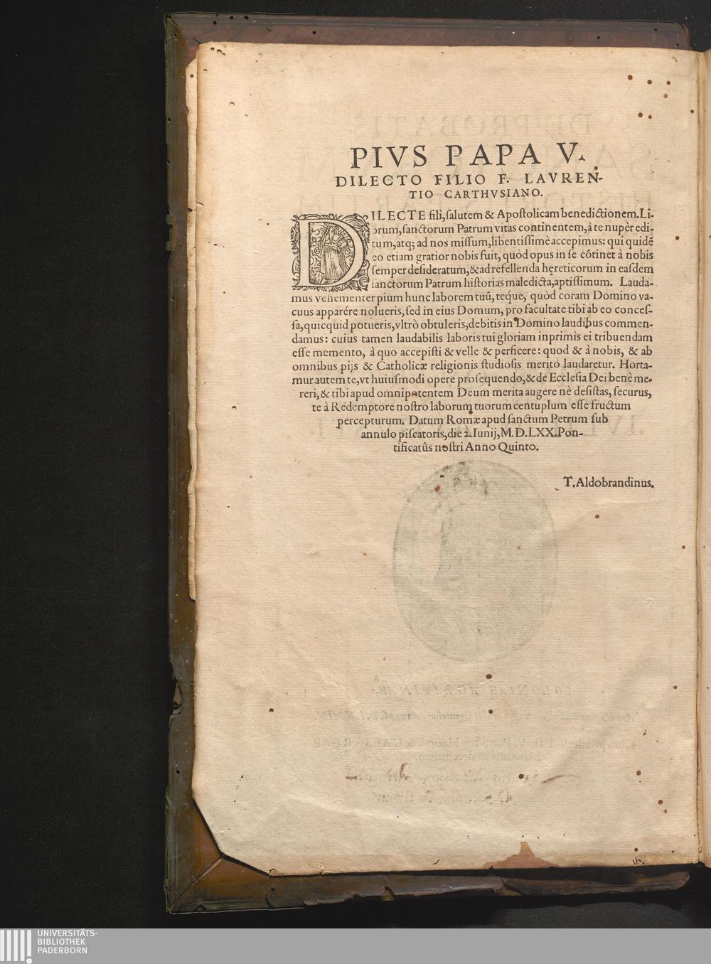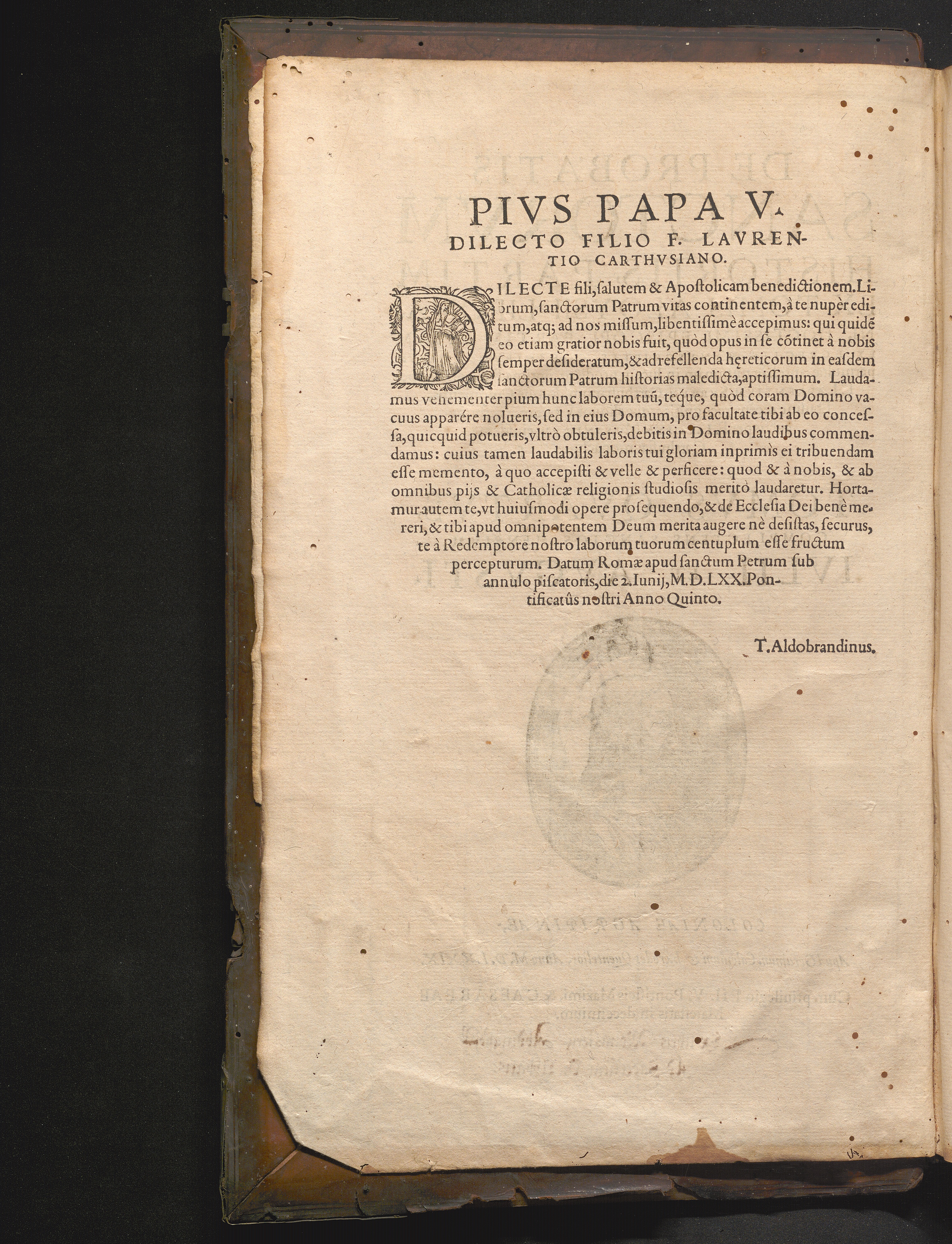 Pivs Papa V. Dilecto Filio F. Lavrentio Carthvsiano.