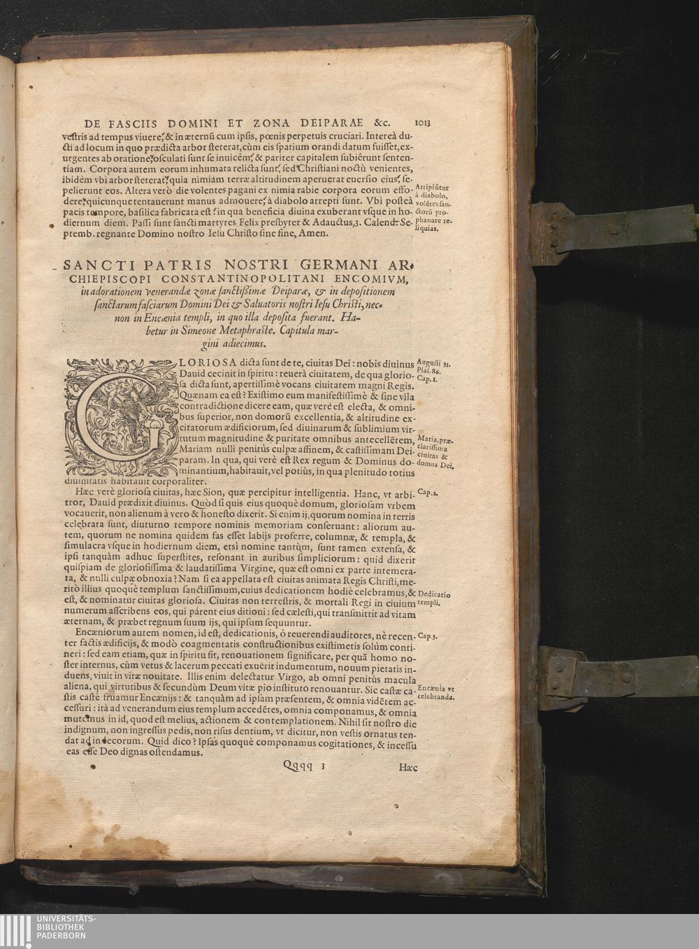 De S. Marię Virginis ac matris Zona & Fascijs Oratio seu encomium Germani episcopi[...]