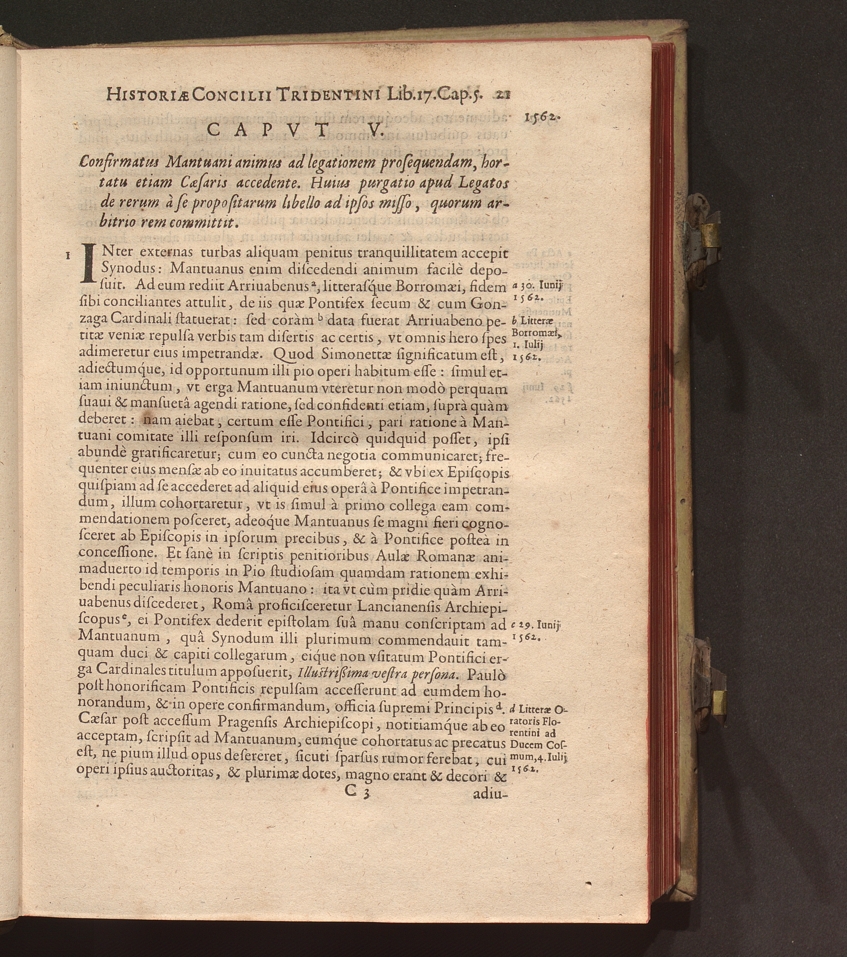 Capvt V. Confirmatus Mantuani animus ad legationem prosequendam, hortatu etiam Caesaris[...]