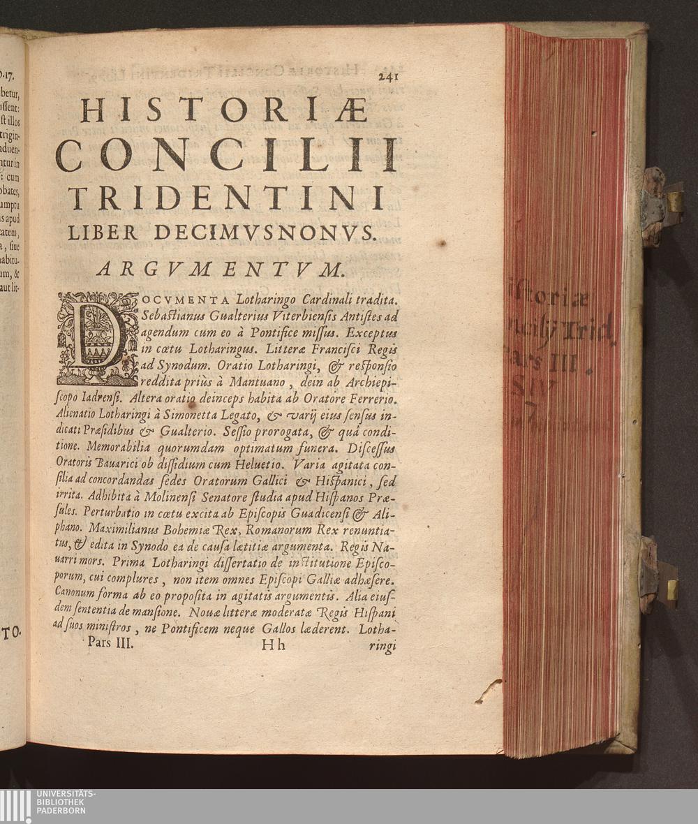 Historiae Concilii Tridentini Liber Decimvsnonvs.