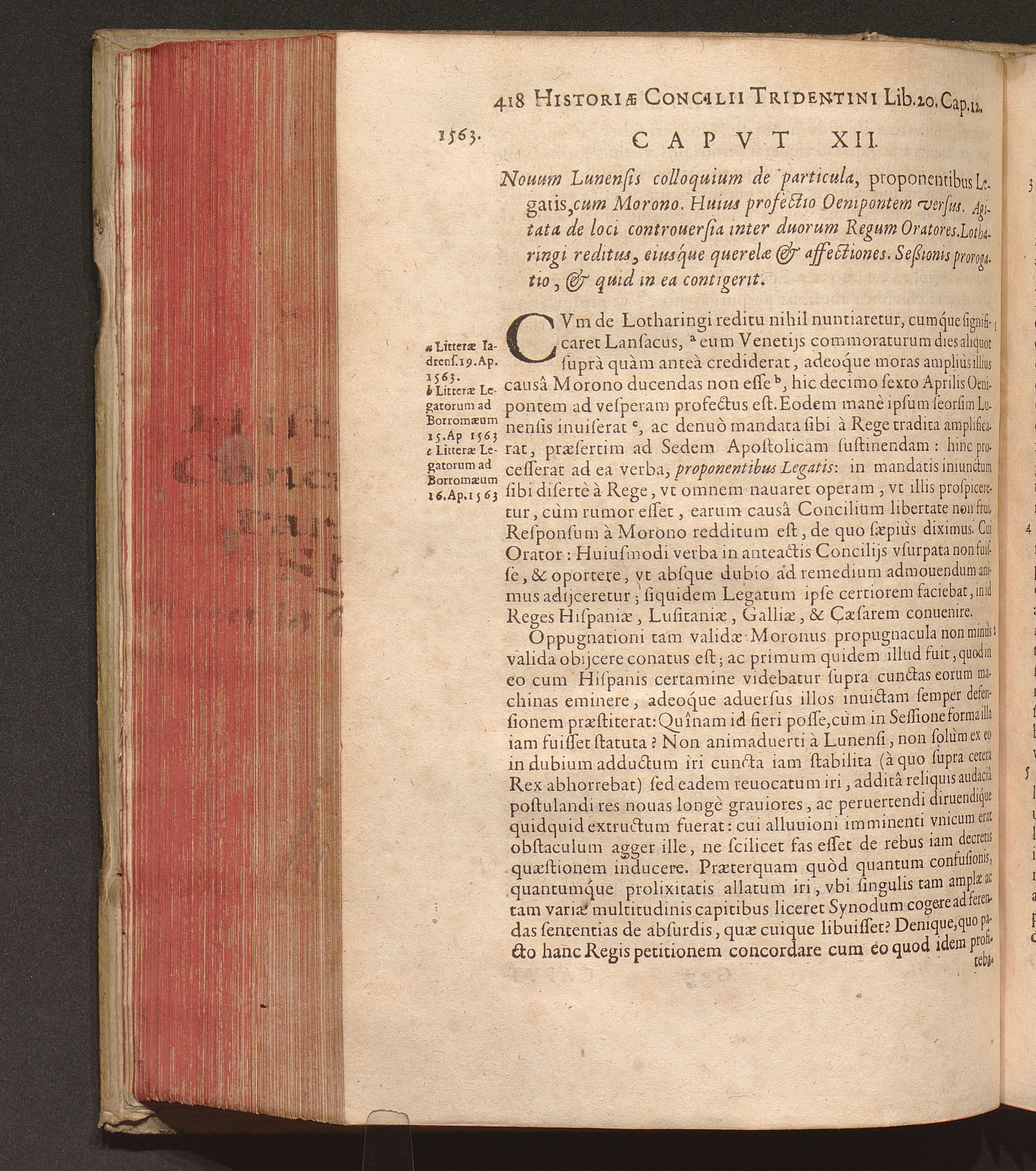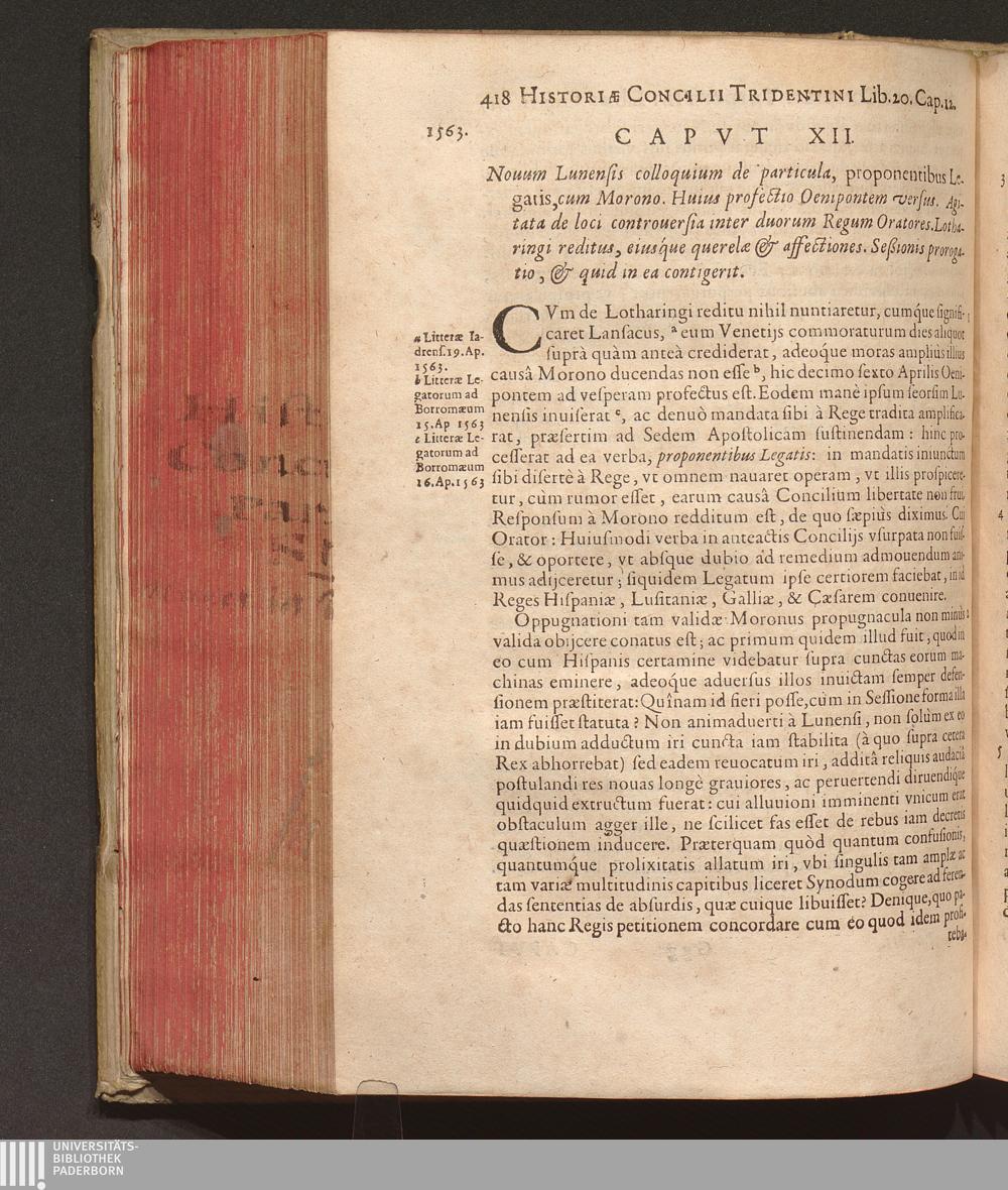 Capvt XII. Nouum Lunensis colloquium de particula, proponentibus Legatis, cum Morono.[...]