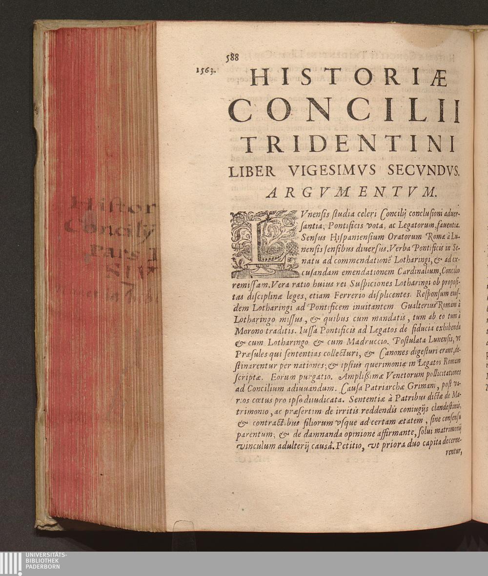 Historiae Concilii Tridentini Liber Vigesimvs Secvndvs.