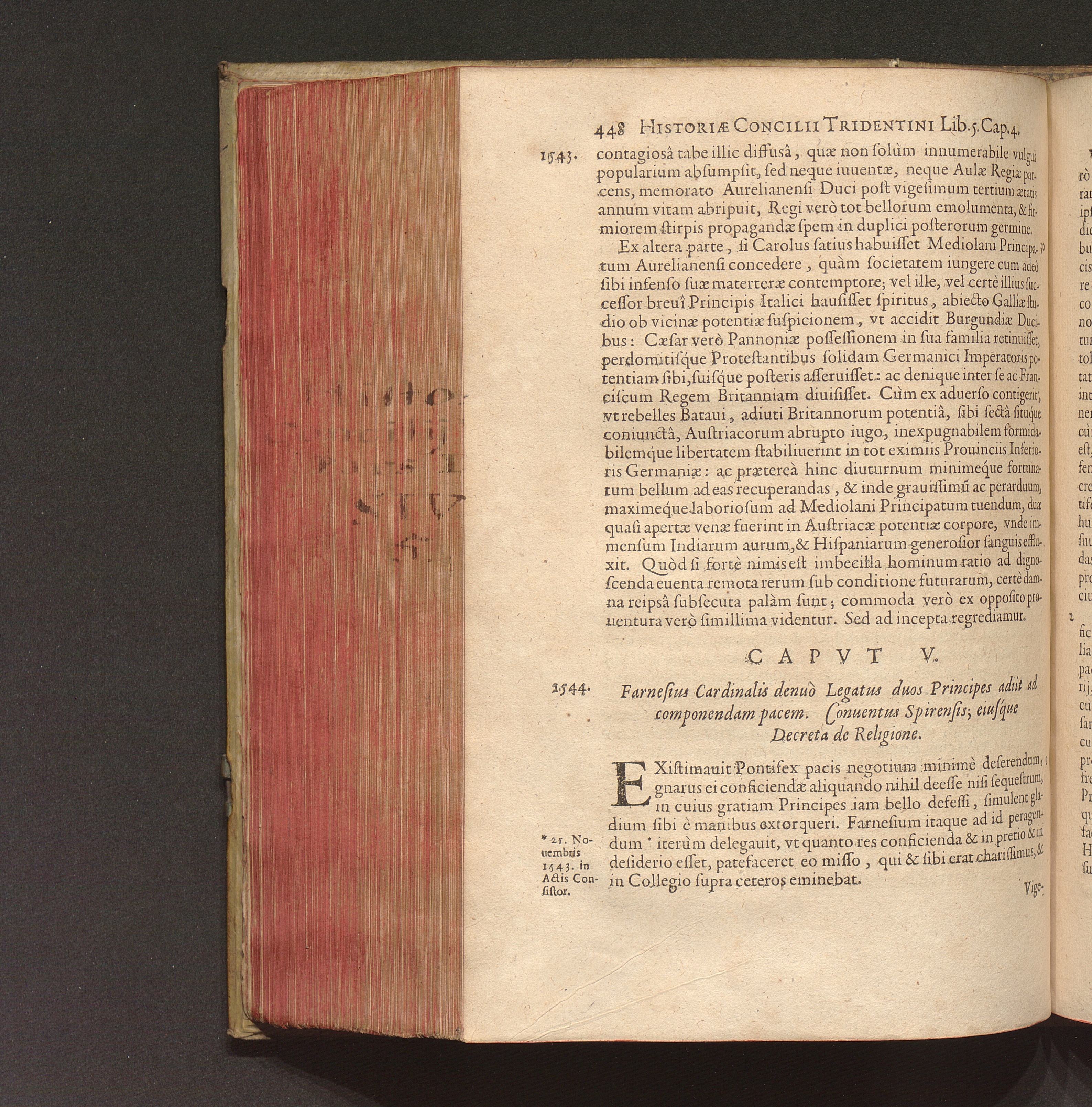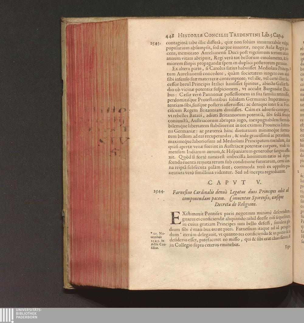 Capvt V. Farnesius Cardinalis denuò Legatus duos Principes adiit ad componendam pacem.[...]